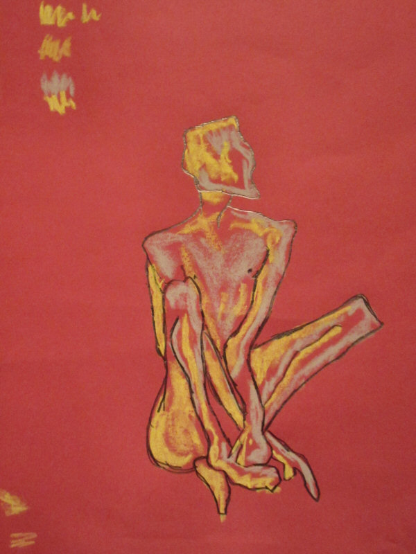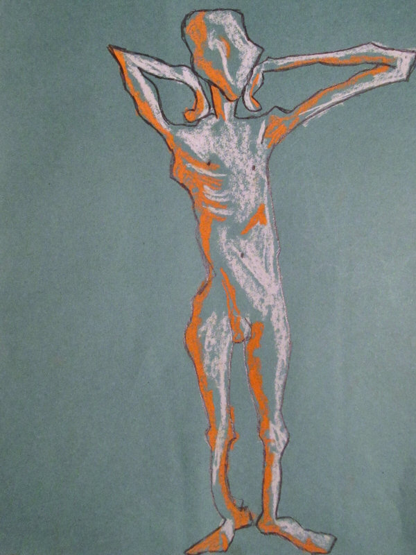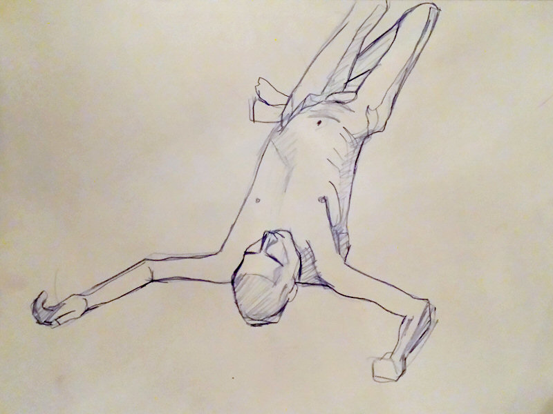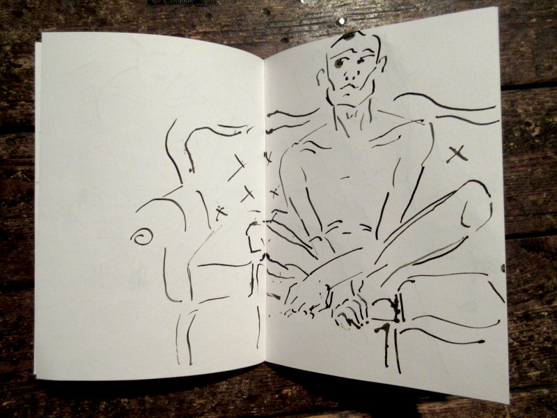 After the break I settled down for 10 minutes squatting like a frog upon the sofa, then held 15 minutes in casual standing stance, and closed with 15 minutes sitting on the floor, my limbs intertwined. I hoped these would offer sufficient angular variety to keep the artists suitably challenged, and incorporate enough restful balance to maintain my comfort throughout.