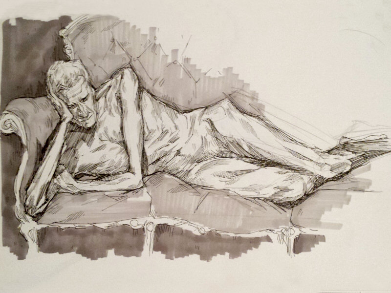 The session had been comfortable, which is never taken for granted when the poses get longer. My only affliction had been one numb arm during the final pose. In truth, none of the poses had been tremendously long. We warmed up with three 2-minute poses, then went 15-minutes (seated frontways), 20-minutes (seated sideways) and 15-minutes (standing) up to an interval.