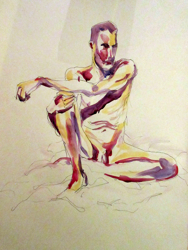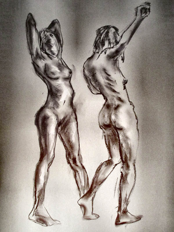 During the interval we indulged in a brief hug. One or two artists enquired whether this was to be the long pose for the second half – ohhh, if only there weren’t so many of you! But alas, no. Instead we swapped rooms and saw out the evening each with a single pose of 40-minutes. Come the end, our efforts were appreciated by the artists, and in kind we appreciated their efforts at capturing our forms.
