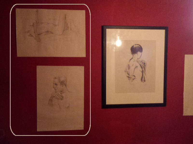 The Finborough Arms in Earl’s Court has become a third home for The Moon and Nude life drawing group. I’d posed for them many times at The Old Dairy in Crouch Hill, and The Sun in Clapham, but curiously my first visit to the new venue was not to pose but to see pictures of myself at their October exhibition in the Cellar.