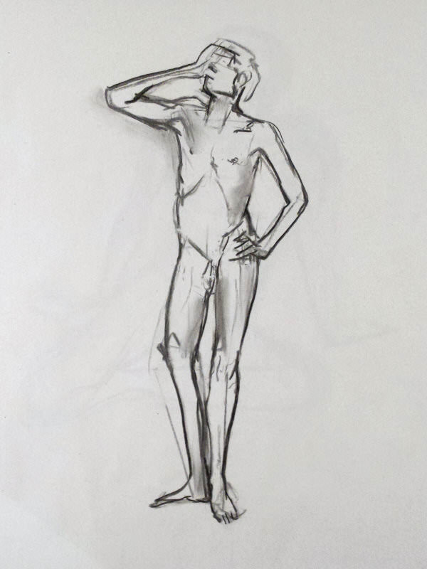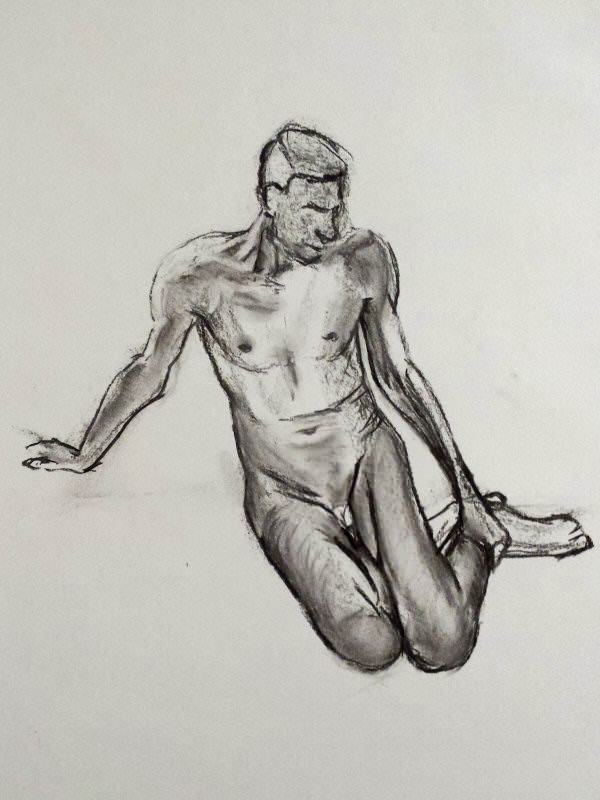Poses in the first half were 10-minutes, 5, 4, 3, 2-minutes, then three lots of 1-minute poses, three lots of 30-second poses, and finally a 20-minute pose up to the interval. There were just two poses after our break: 15-minutes and 23-minutes. Seated poses were favoured for the longer work – which suited me fine – whereas the shorter poses were a good winter warm-up.