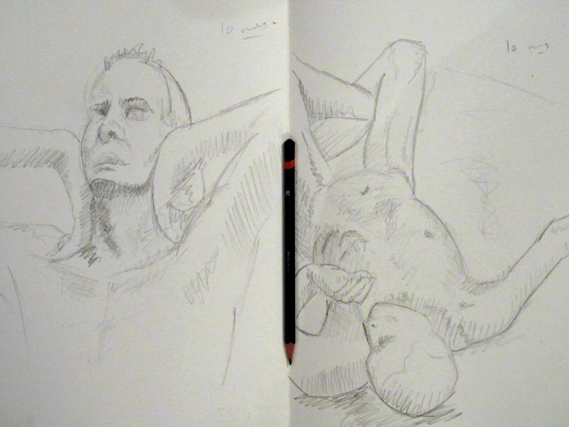 We opened with the traditional 5-minutes, 4, 3, 2, 1-minute pose times, then followed with 10-minutes, 10 and 15-minutes to a short interval. I supped water and partook of chocolate biscuits while the artist hoards migrated to and from the bar in a hubbub of laughs and banter.