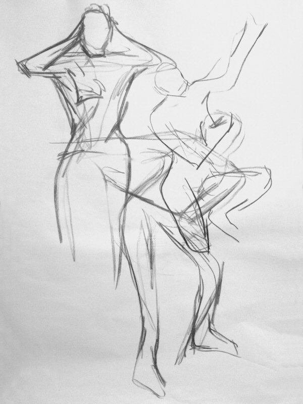 Poses were 10-minutes, 5, 4, 3, 2, three of 1-minute, three of 30-seconds, and then 20-minutes to the halfway point. After a break, we ended with 5-minutes, 10-minutes and 20-minutes – the last three all being on that mighty beanbag. I was comfortable, pretty warm and, as always, glad to be modelling at Hackney Downs Studios.