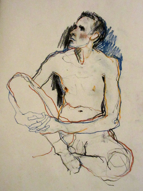 Julia was the facilitator for this Moon and Nude session. The last time she presided over my poses she’d kindly supplied me with a hot water bottle for extra comfort. Not this time, however, as apparently it had burst beneath some unfortunate model on a subsequent occasion. No scalding; just dampened pride, perhaps.