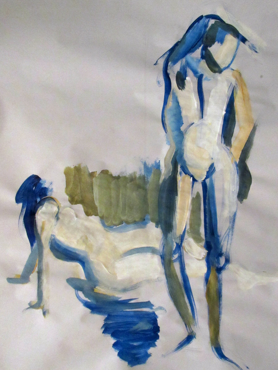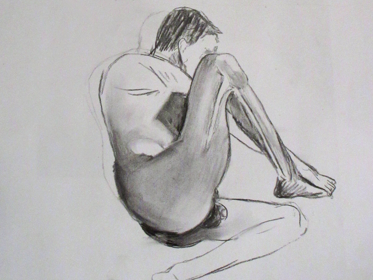We had another impressive assemblage of artists surrounding us. I stopped counting at 30, after which a few more arrived. While modelling, we worked at opposite ends of the central mats, swapping sides from time to time for variety. We started with poses of 10-minutes, then 2-minutes, 1-minute, 30-seconds, 5-minutes, 10 and 15-minutes.