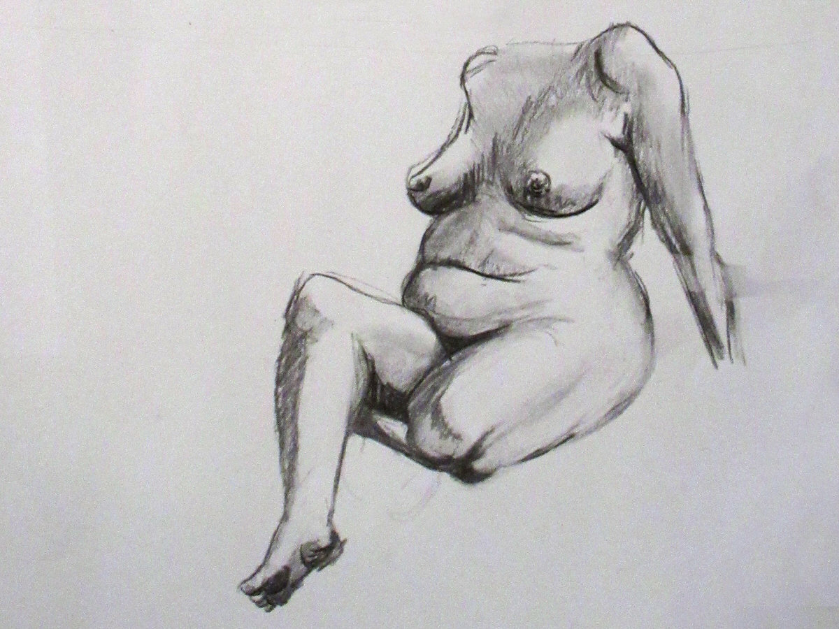 After our break there was just time for a 10-minutes pose, which lasted a quarter of an hour, and a final 15-minute pose. There was a nice atmosphere about the room but my body didn’t quite feel on top form. That was a pity because when I arrived an artist had said, “You’re the model! Oh good!” I hope I delivered enough to meet the anticipation.