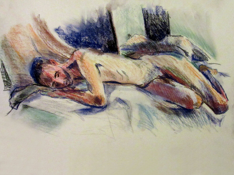 This was a pleasant group for which to model – friendly, as small groups so often are, with artists seemingly at ease talking about their work and making light conversation. The creative process was taken seriously but without formality; requested poses were imaginative and artists moved around to find the view they wanted. Overall, a pleasing début at an intriguing venue.