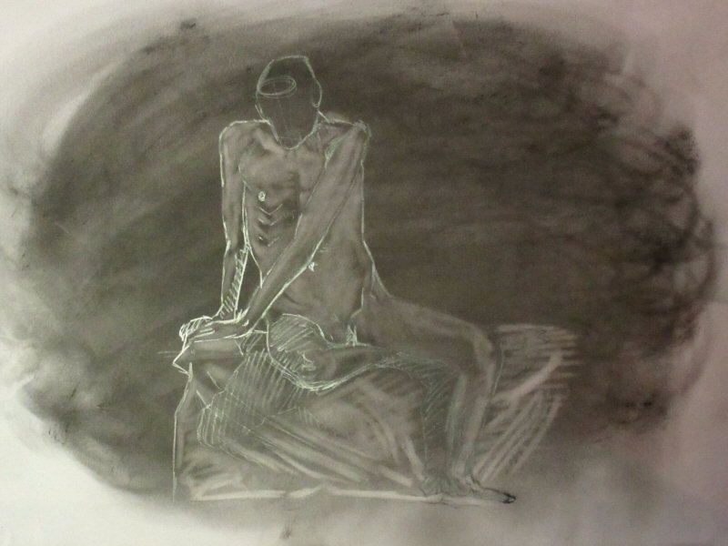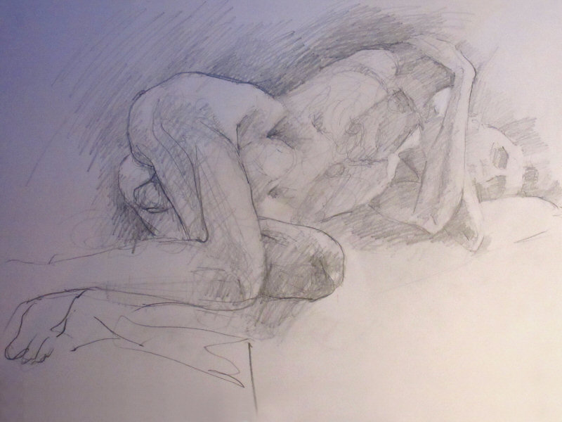 We finished with two half-hour poses after the break. Again, comfort was my primary objective but with some interesting turns of the body and limbs. All went to plan and some good art was produced. The only downside was leaving at the end without my wristwatch… but I was reunited with it at the pub two days later. Happy ending.