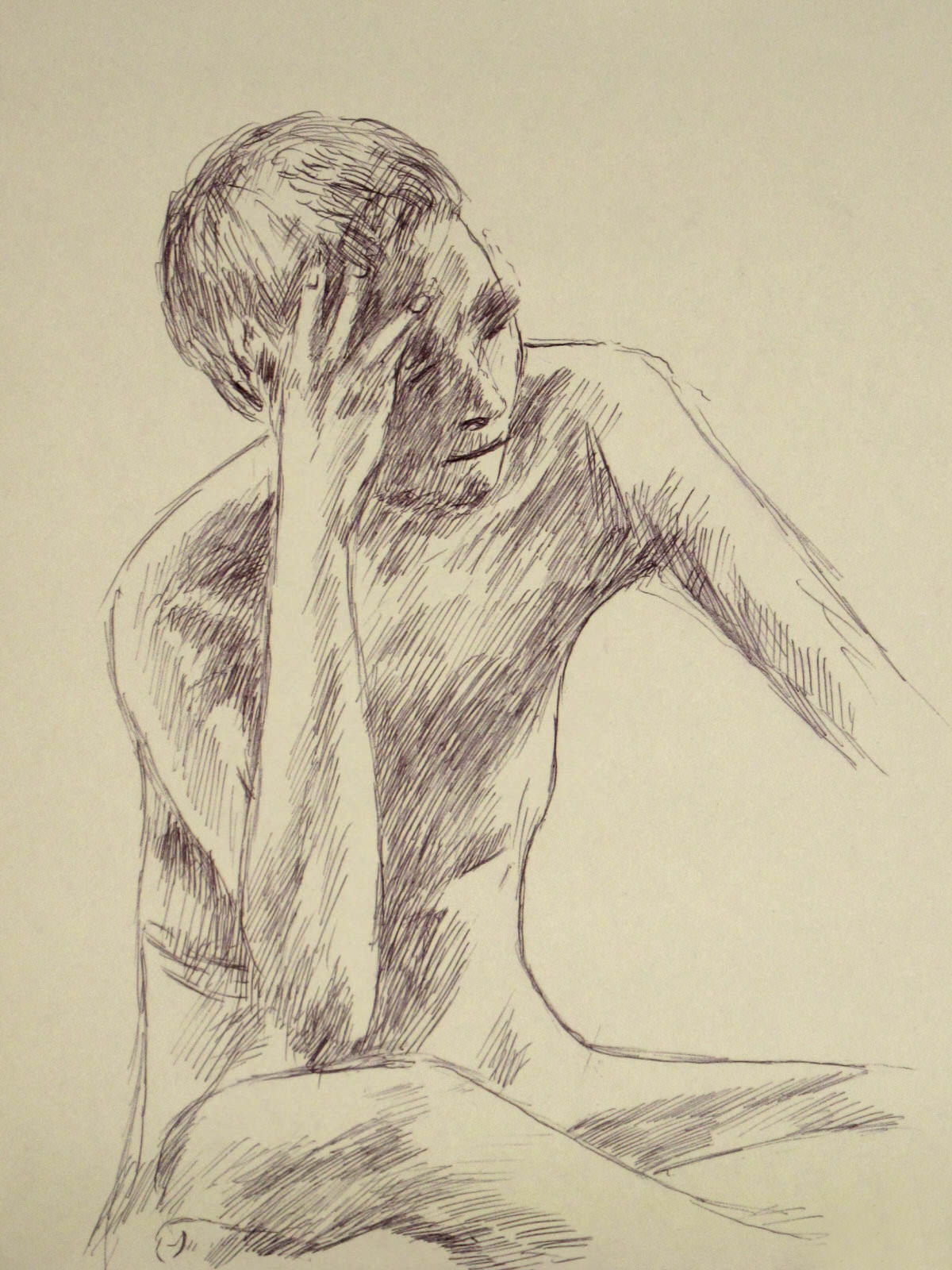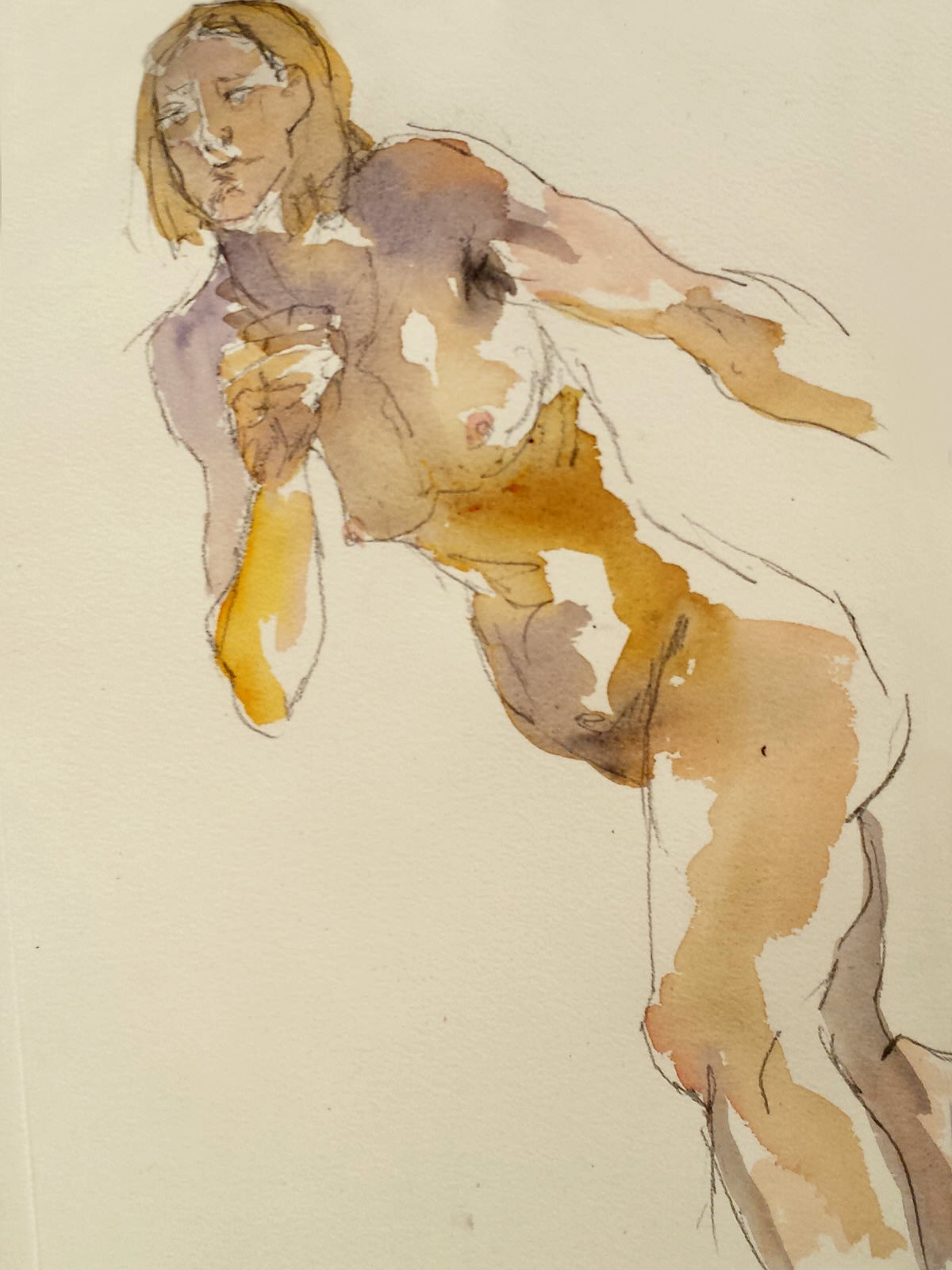 These words called out by Esther at Mall Galleries were music to my ears. We were posing separately in the same space for Hesketh Hubbard Art Society – Esther was presenting eight 15-minute poses, while my shifts were four of 30-minutes – and I was being troubled by searing cramp.