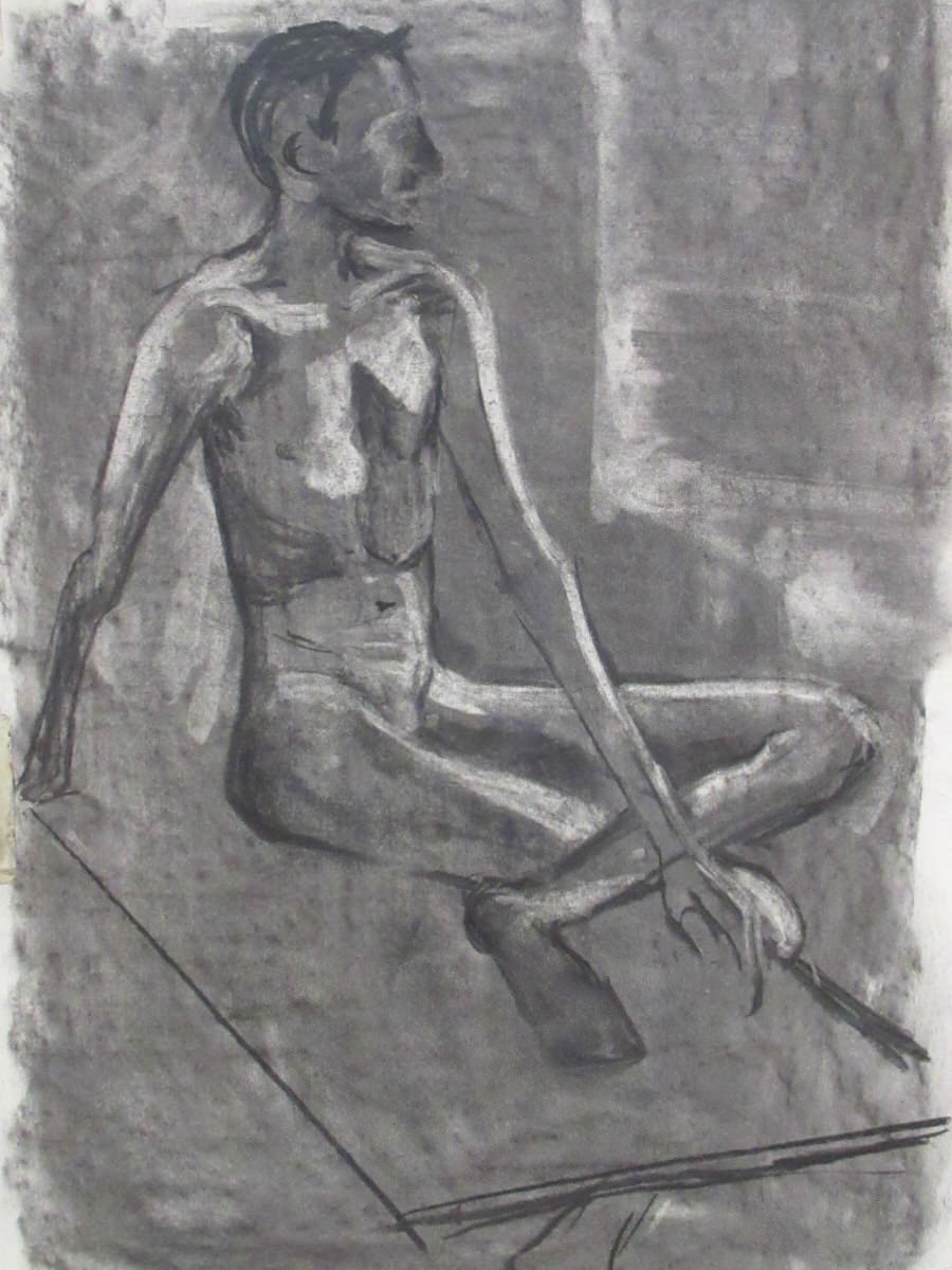 Once the preliminary paperwork was dealt with, I could begin what turned out to be a thoroughly enjoyable session, for five students and their tutor, Gillian. During our three hours, the plan was to start with a series of 10-minute short poses, then take a break, and afterwards hold a single long pose that would be resumed the following week. For the short work, in the round, Gillian suggested that poses be around, on and under a central table.