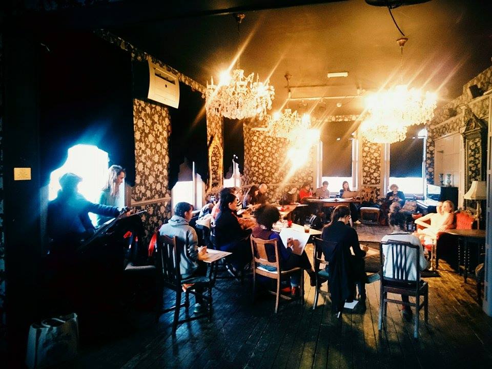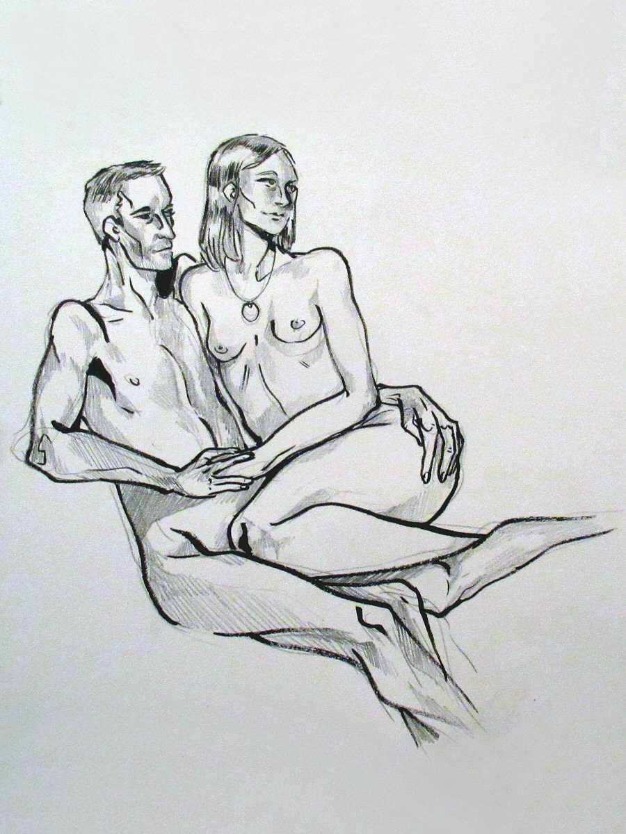 When Esther staged a Spirited Bodies group life modelling event at Bargehouse on London’s southbank back in November last year, Tatiana Moressoni kindly agreed to be official photographer. Spirited Sound at Bargehouse was a magnificent success, and Tatiana’s photos were a superb record, so Esther and I gladly repaid the favour by modelling together for her Camberwell Life Drawing group at The Cambria pub.