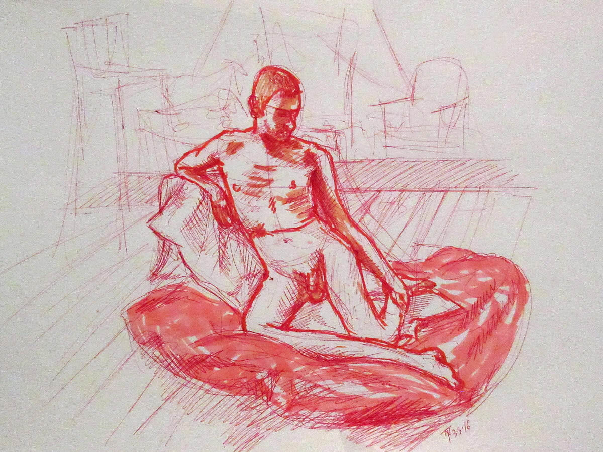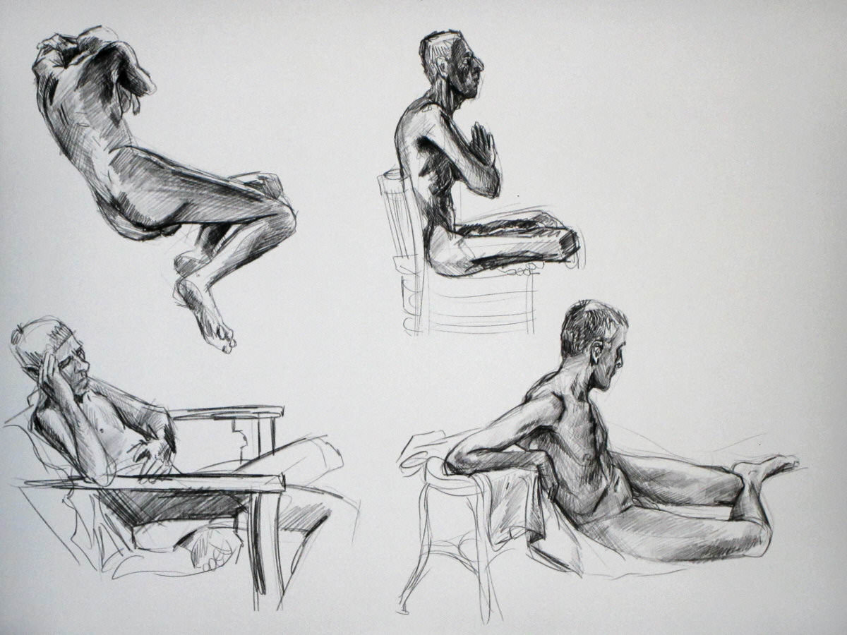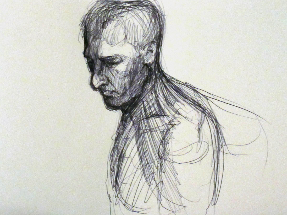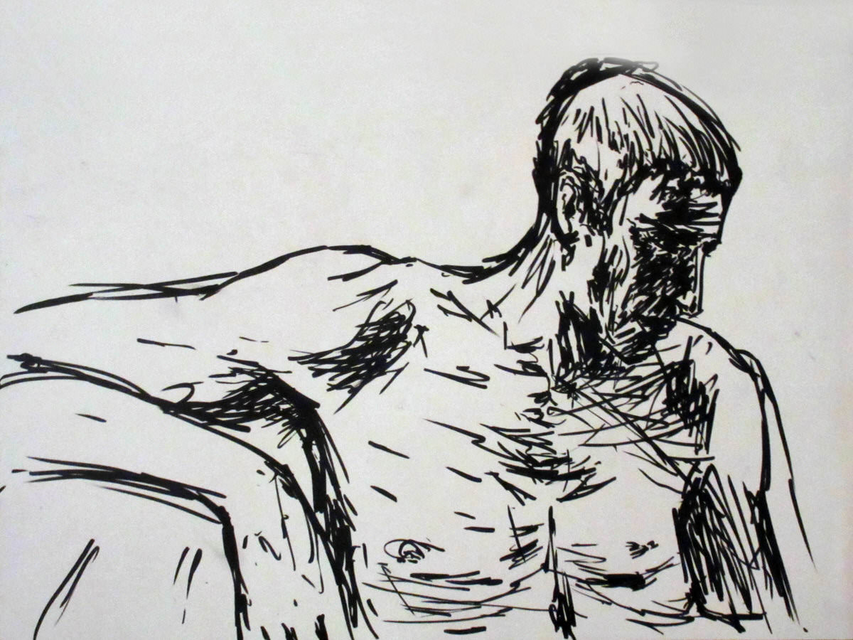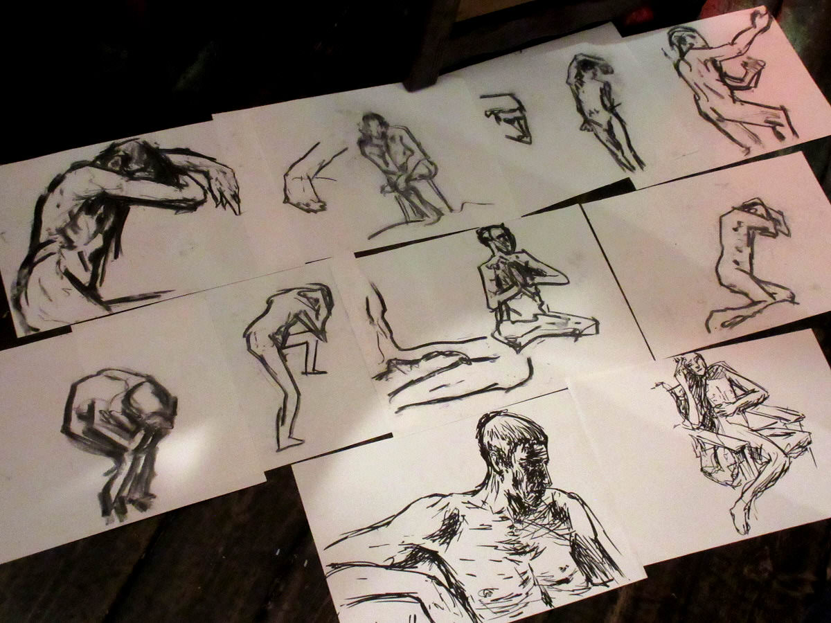 After so much travelling, and such little sleep, I feared that exhaustion might catch up with me at some point; that in extremis, I might even nod off. I need not have worried, however. It’s such a lively life drawing group at The Star by Hackney Downs that I felt alert and in pretty good form throughout. Furthermore, it was the busiest I’d ever seen it, with perhaps as many as sixteen artists managing to draw comfortably in a relatively small space.