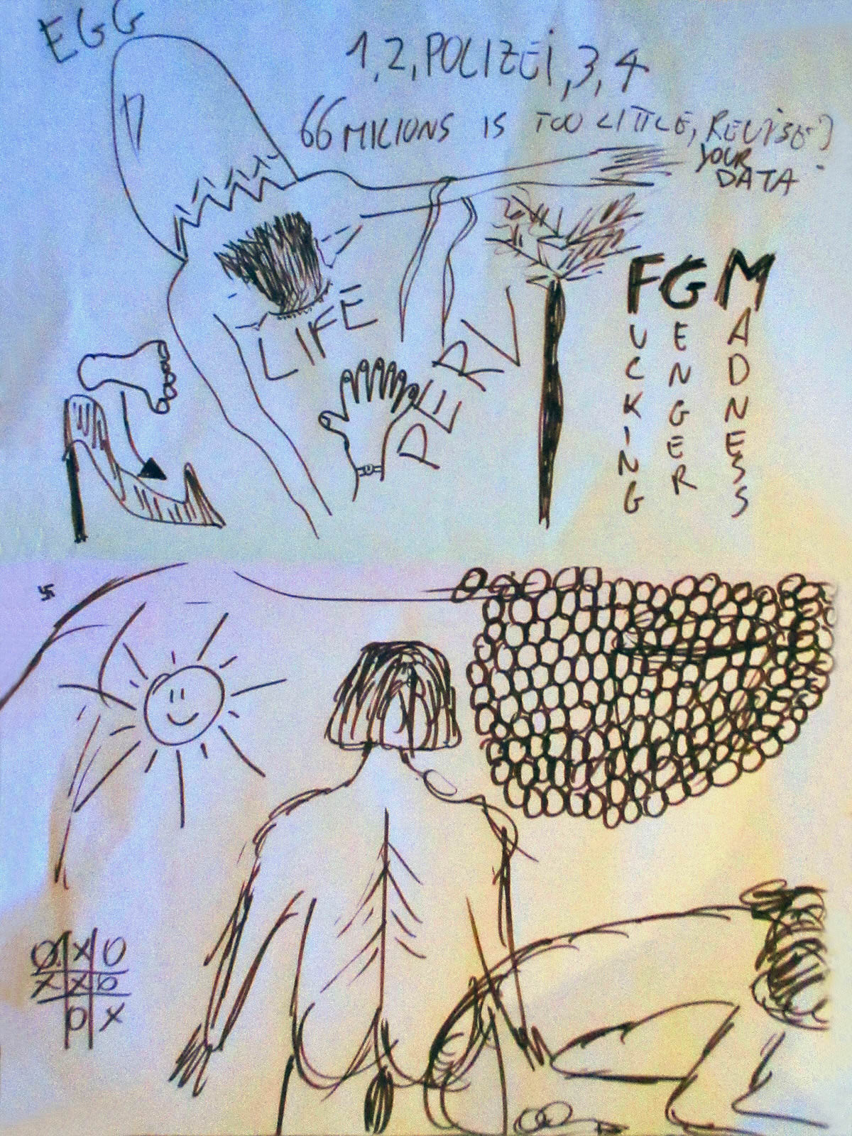 She finished on cue at the end of Sanvean, and immediately I changed the mood by kicking into ‘Smoke in the Shadow’ by Lydia Lunch. Esther put on her red fetish stilettos, g-string and lipstick to pose with her tickling feather. She was portraying a journey of self-discovery, and the audience got into the drama of her performance by capturing these elements in their drawings. Only for 1-minute, however, as I lowered the volume once more, and Esther announced: “Here is the news.”