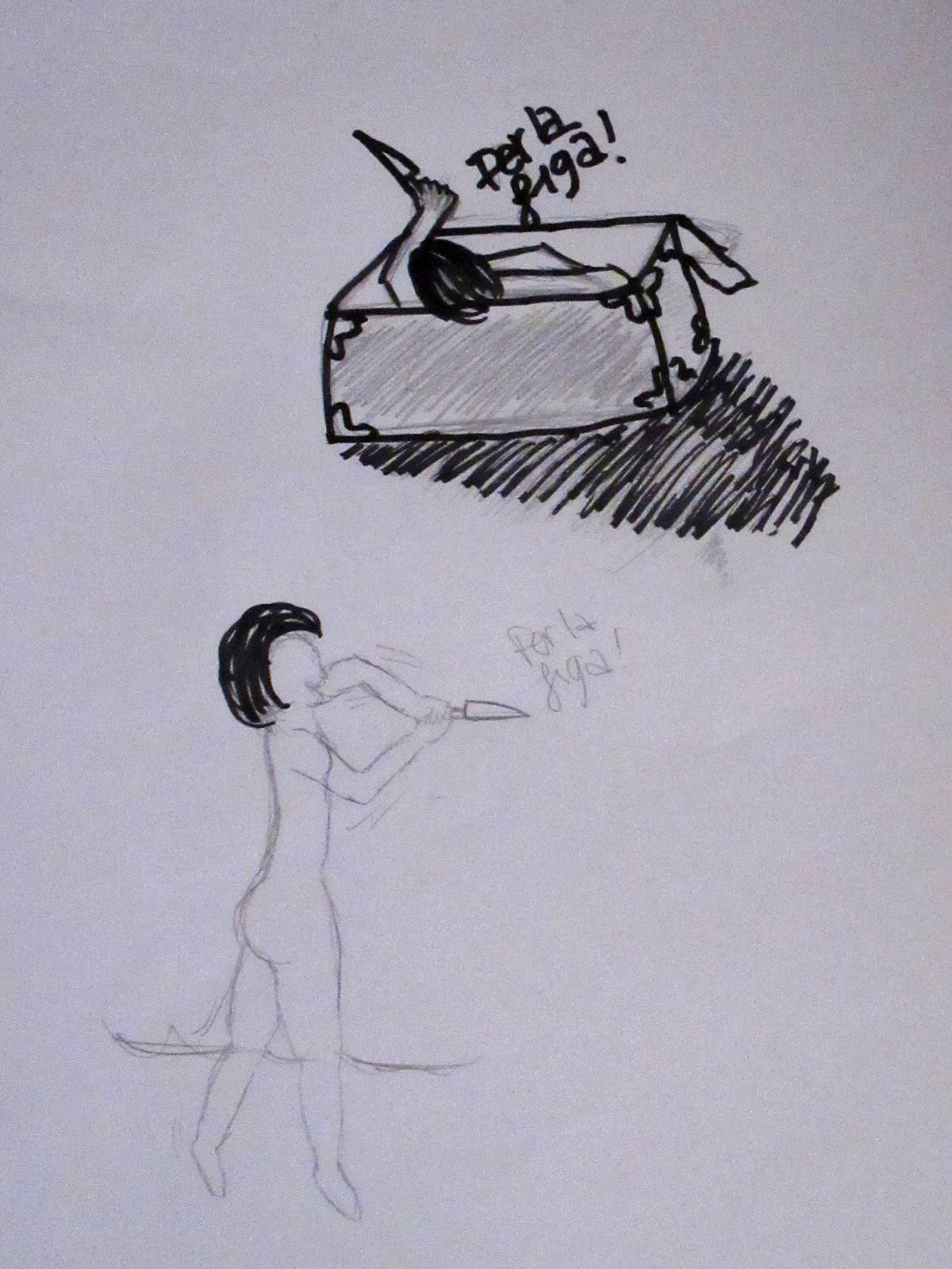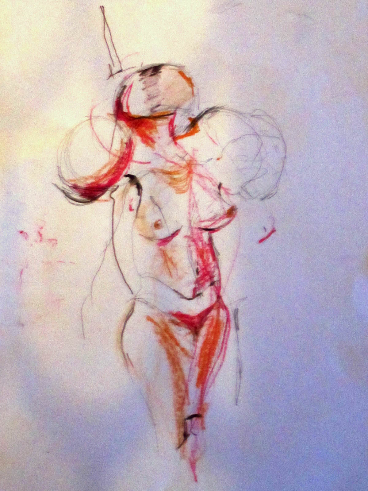Esther tore off the veil, held up the knife, and delivered a last impassioned monologue in Italian while the audience captured her form on paper. She then explained that their next life drawing opportunity would be a movement pose – very slow at the outset, but speeding up considerably. I started playing ‘Free Money’ by Patti Smith and Esther started moving. I had about two minutes till my next transition, so I took the chance to do a little filming.