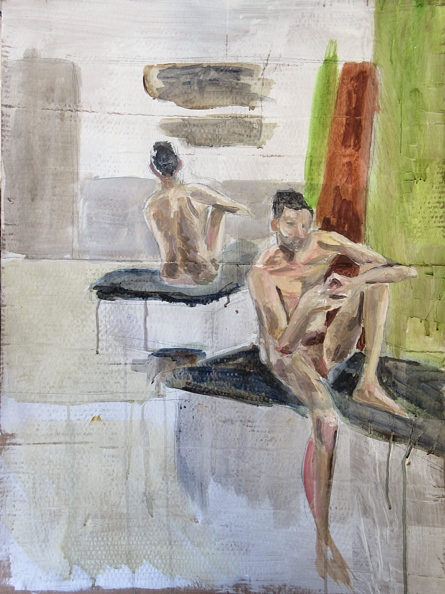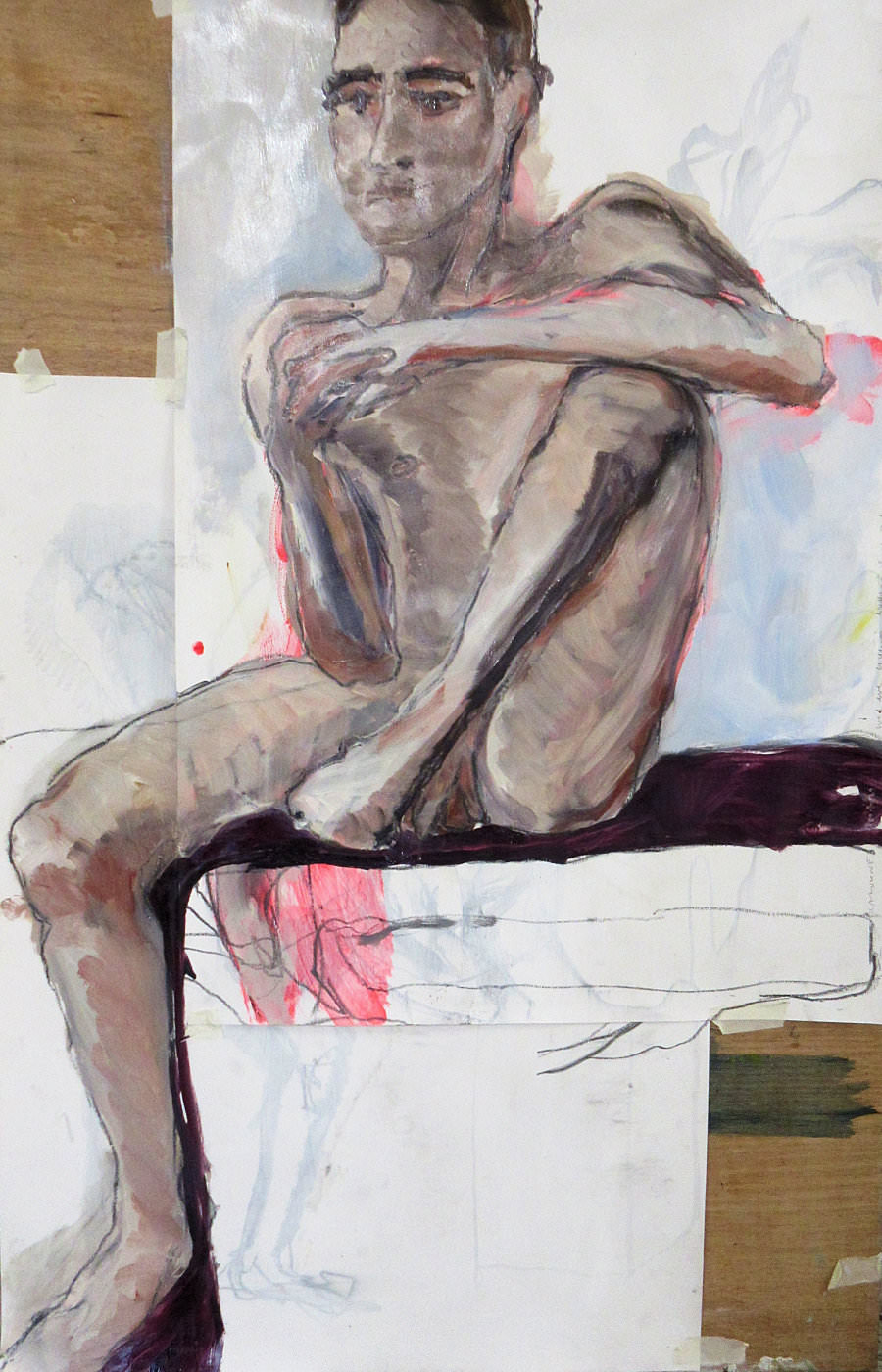 For the second pose I adopted arm positions direct from one of Schiele’s works but it may not have been noted. More directly in our collective awareness was the college’s head of department who was present with us to ‘assess’ the group’s tutor, Gillian. I’ve never heard the artists – all mature – express anything other than full appreciation for Gillian’s approach, but these are routine rituals that beset our modern institutions.