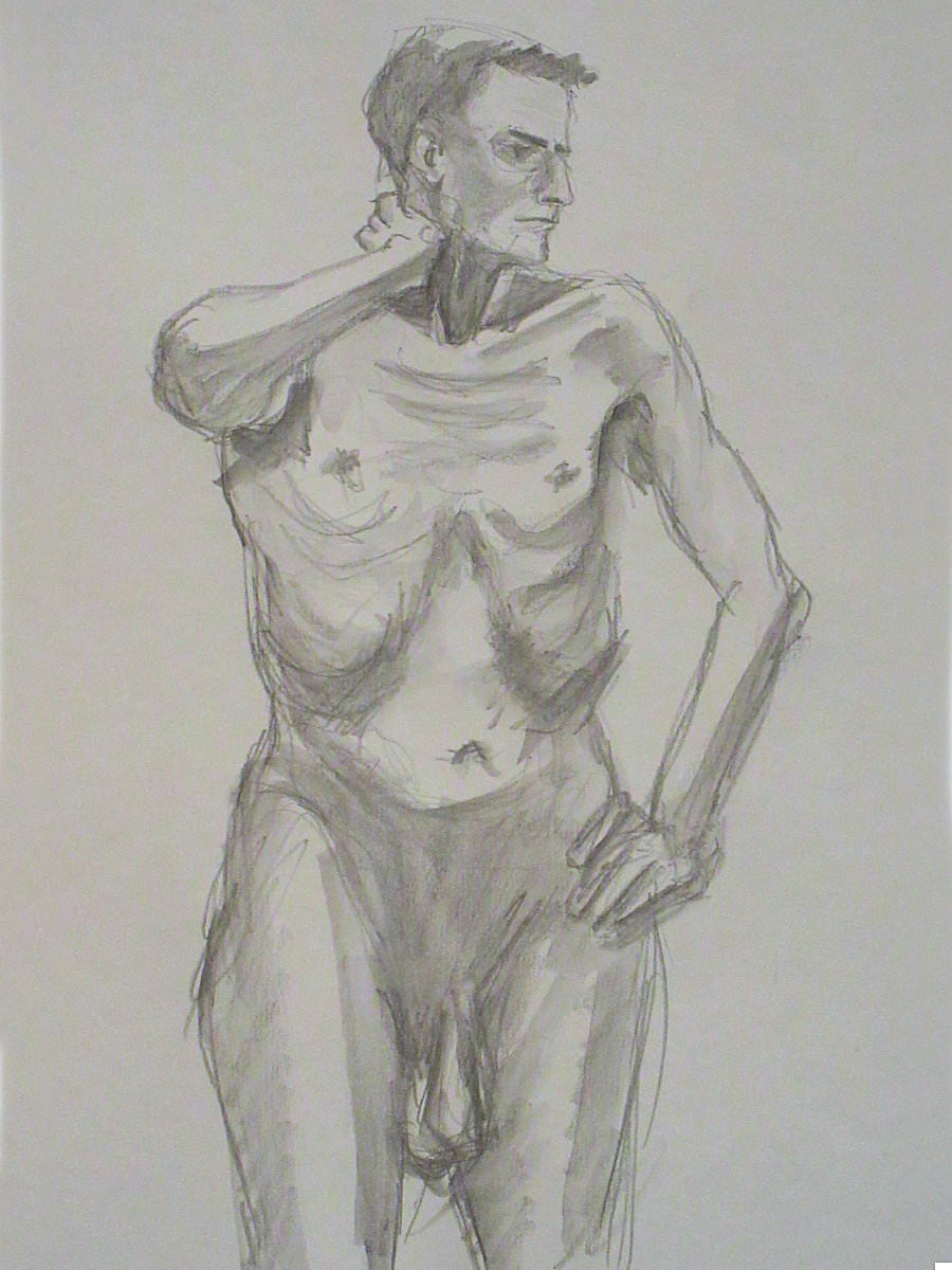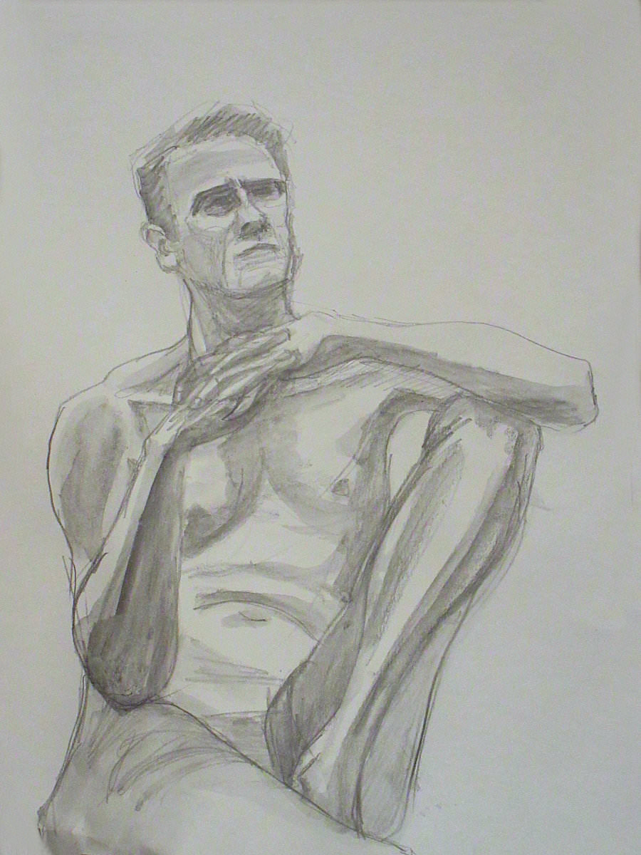 “Do your toes always cross like that or have you done it for the pose?” – this was the question put to me by Eddie, the group organiser, as a I settled down for my eleventh piece of the evening. When getting into a pose, my focus is on composition, balance, pressure points and support, so sometimes I miss the details of my own body. Eddie hadn’t, though. As I sat naked for 15 minutes, he concentrated on drawing one foot.