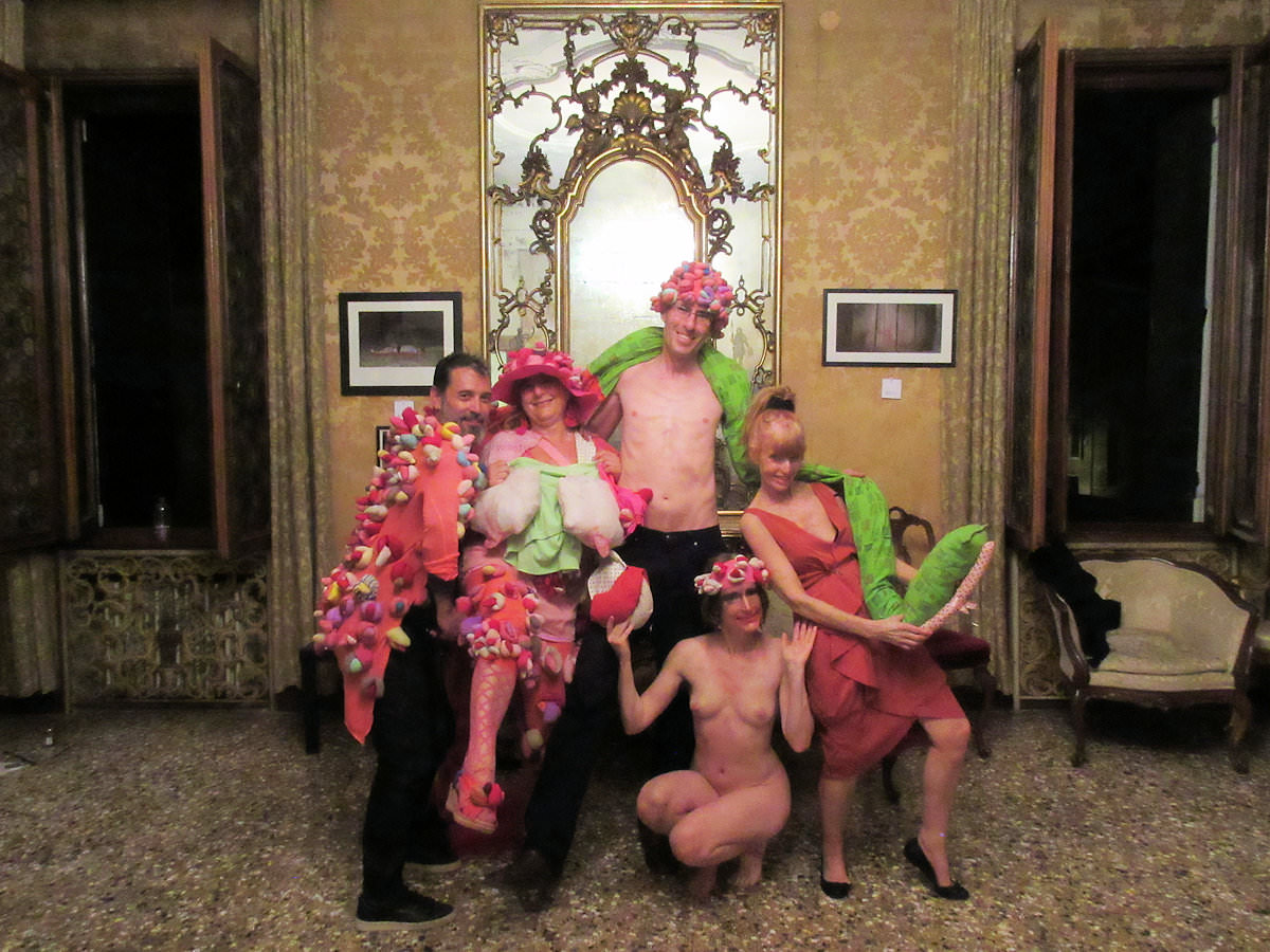 At the end of the dance, Alexandra announced her mission to spread love, peace, and sexual acceptance around the world, then invited us all to take up an item and join her in dancing once again. Everyone took part. Having struggled so much to get this far, it was a beautiful hedonistic way to end the evening. Afterwards I helped Esther to finish washing blood and paint from her body. It was around quarter to midnight when at last we left with Glynis and Peter, heading to the Ca’ d’Oro vaporetto stop. We hugged our very fond farewells then went separate ways… hopeful of reuniting soon.