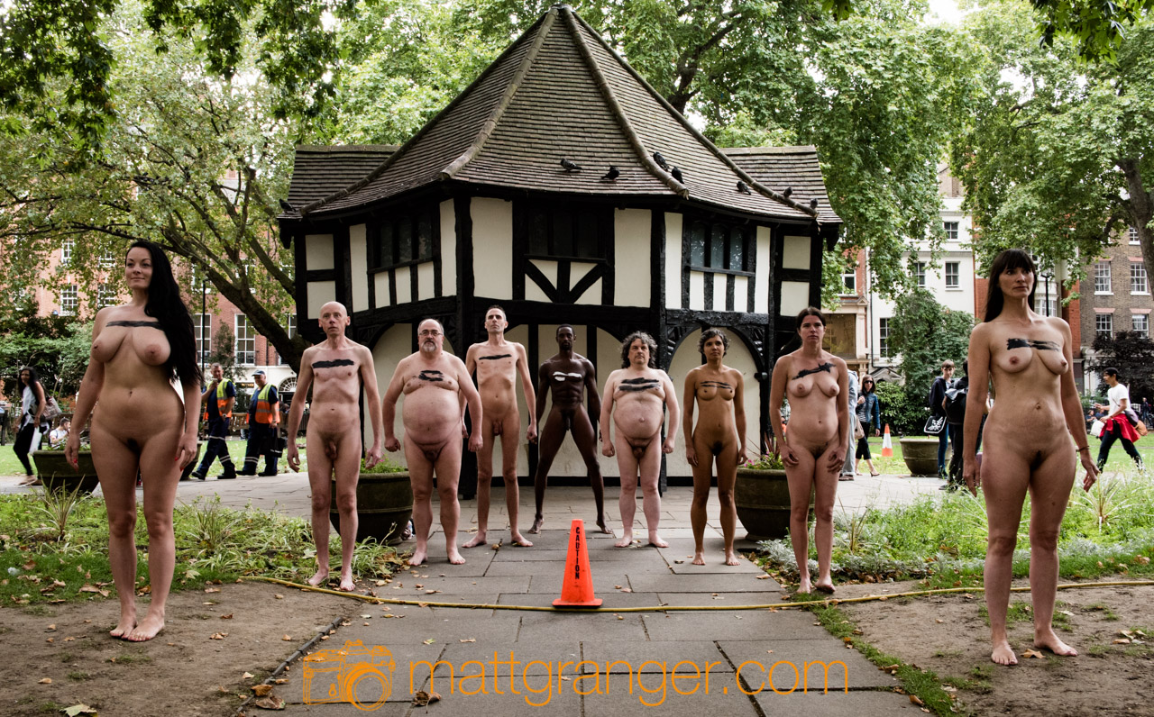 “GO NUDE OR GO HOME” shouted the sign, adding provocatively: #getnudenow. The innocent barista at Nude Espresso who chalked those words on a board outside their Soho Square café probably didn’t anticipate that guerrilla naked-art performers might be passing that day, but when photographer Matt Granger invited volunteer models to join him at the square, there could be only one outcome…