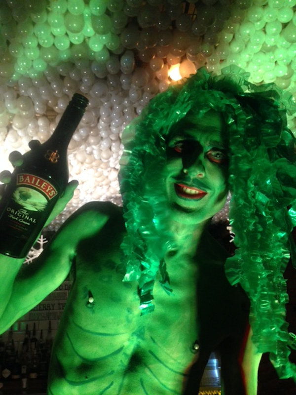 In a darksome, red-hued back room of The Book Club basement bar in Shoreditch, the green Snazaroo was running low. Unsurprisingly, maybe, as it had been used to colour me all over from hairline to toenails. I was just applying the finishing touches of paint to my penis and scrotum when the poor barman walked by – it was a sight that he can never unsee…