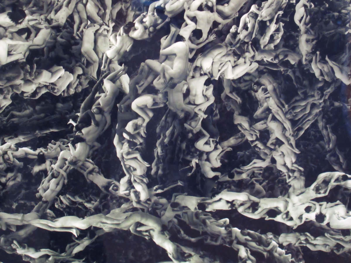 This wasn’t even the full-size version, yet at 16 feet wide by 4 feet high it was truly an astonishing piece, assembled from figures photographed in New York, Buenos Aires, London, Berlin and Naples. Together with friends, I’d taken part in the London (2013) and Berlin (2014) shoots, and now rejoiced in recognising faces. There’s me, top left corner, Cy just below, Peter to the right, Zabine just below, Clifford by her knee…