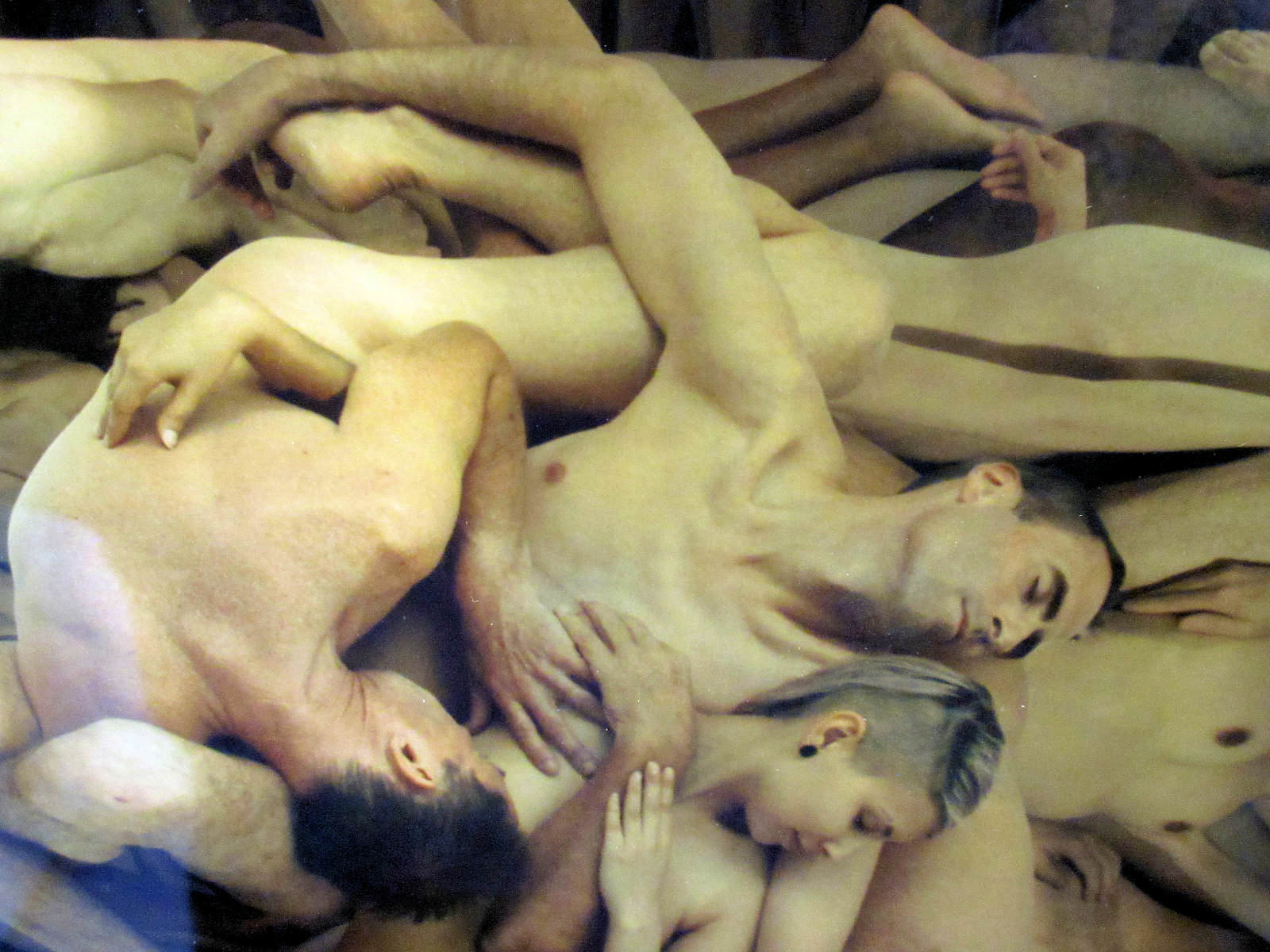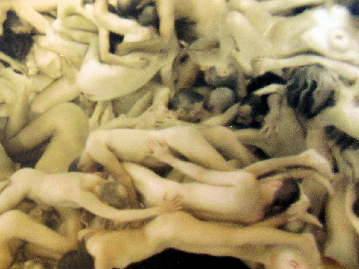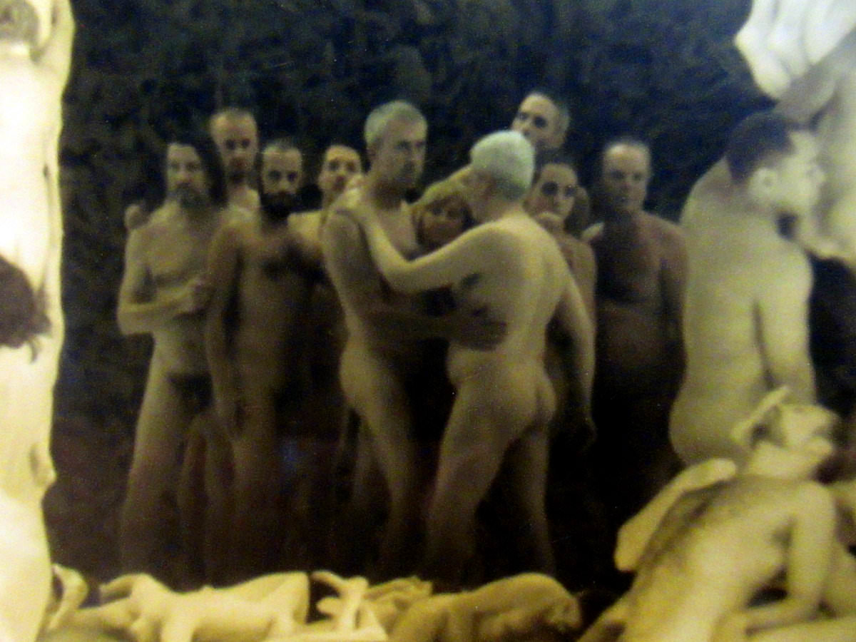 These were merely among the most noticeable figures. The more I studied the piece, the more would catch my eye. In three separate places my upper torso loomed large, curved inwards or backwards in a tangle of other body fragments. Elsewhere I would find myself peering out from a standing group – shots taken in Berlin. No matter how tiny the figures, their clarity was pin-sharp. My camera has not done them justice.