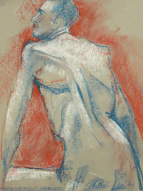As usual, four models had been booked by Hesketh Hubbard Art Society and, as is more often the case, I was on 30-minute pose duty. I arrived to find the layout of Mall Galleries had changed, with two partitions now dividing the exhibition space. I asked at reception: “Where are the half-hour poses?” A genteel lady replied, “At the far end,” and then added solemnly, “it’s a man…”