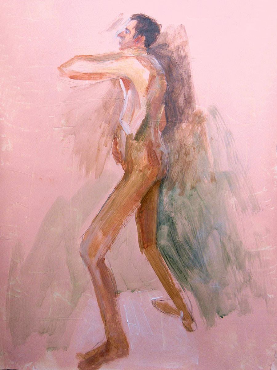 I placed my folded white sheet on the floor precisely how it had been last week and the week before. Masking tape marked where my feet should go, although by now my own black footprints gave me all the direction I needed. Someone really ought to wipe the studio floor at Morley College. There were to be no short warm-ups so, at ten past six, when the artists settled, I took off my robe and resumed my long pose.