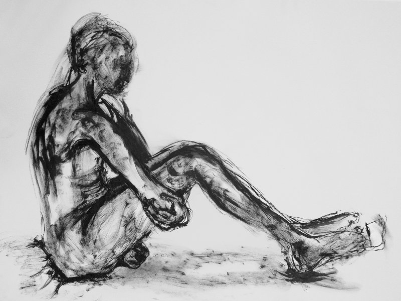 5 and 10-minute poses came next, first standing with hands round my head, and then squatting low. This latter was becoming tough on my toes and tendons during the last few minutes but as I had woken that morning on holiday in Geneva, the discomfort at least helped keep me sharp. After a moment to recover, I was ready for the long pose. I placed a cushion beneath my sheet, sat down and held my arms behind my legs.