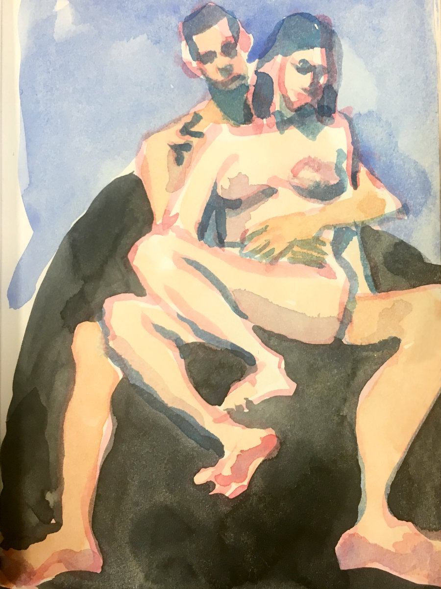 It wasn’t horrendously painful, and there was still the sweet consolation of sharing with Esther, yet I couldn’t pretend not to be relieved when it was over. Esther peeled herself from me and revealed a large red sweaty imprint across my sunken torso. What larks! But it was lovely to see some inspired artworks at the end, and great that the session had been so successful. At this rate they may have to consider using a bigger room.