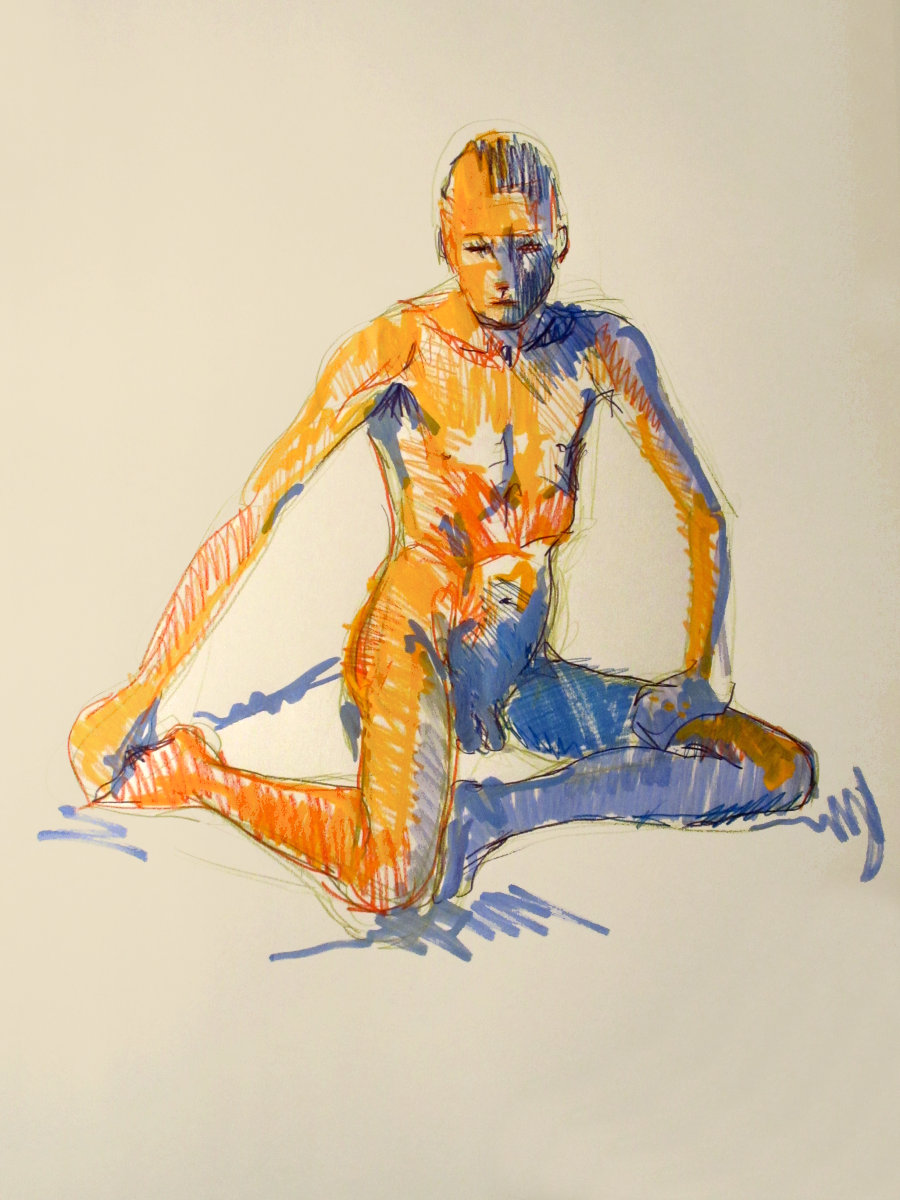 It was supposed to be a quiet week for me, with Monday at Mall Galleries being my only booking. Sunday evening offers from Ravensbourne and SketchPad Drawing, however, changed all that – Wednesday 1 March would be a third successive evening of working after my full-time day job. Combined with unaccountably disrupted sleep, I was becoming a physically tired life model. Still, I felt enthused for all three sessions, each one having its own special appeal.