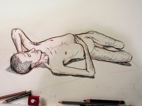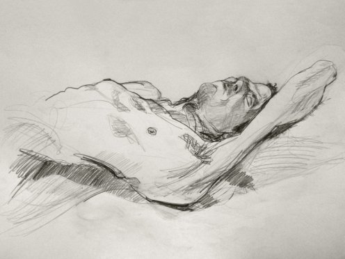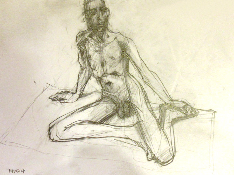 It would be my first time at the Life Drawing Salon but I had heard only nice things. On arriving I introduced myself to the group’s profoundly laid-back organiser, Nils. He had already texted me his pose plan for the evening: three poses of 2-minutes, three of 5-minutes, two of 20-minutes, then a half-hour break, and finally two of 30-minutes to end the evening. Tea, sandwiches and pastries were freely available at the interval and – most novel of all – each pose would be assigned music of the same length.