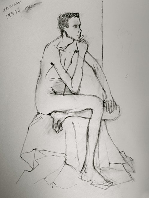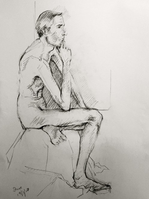As sometimes happens, I found the lower floor at Wanstead House fully occupied by worshippers of Grace Church. This was a tad awkward for me when I arrived, as they had congregated in the room through which the gents’ toilets are accessed. I deferred answering the call of nature and instead helped life drawing class organiser, Patrick to take the tea-making things upstairs to the Roding Room, where poses would begin at 10:30am.