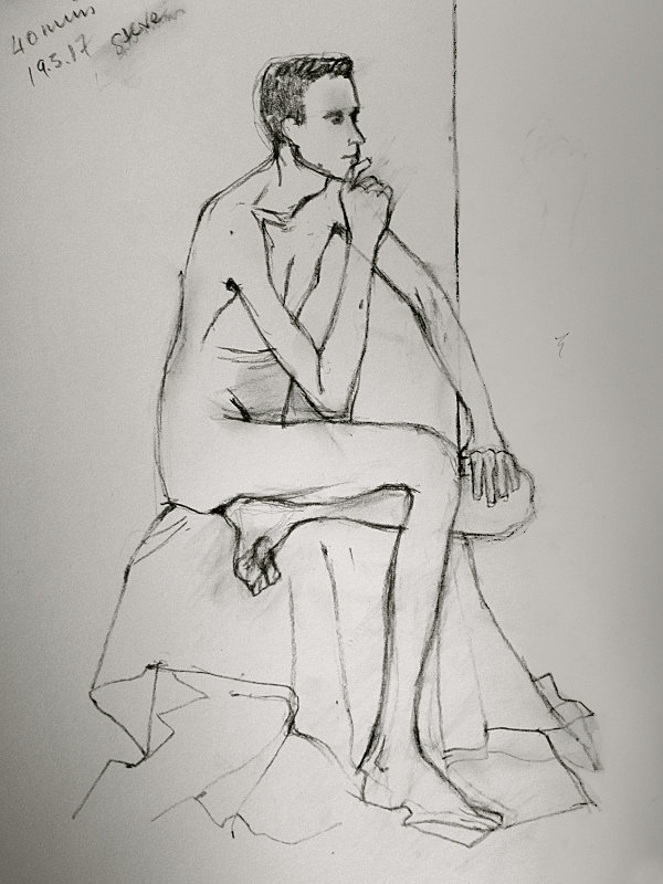 I began with 10-minutes standing then sat on the floor with much crossing of limbs for another 10-minutes. For 40-minutes, I sat on a low stool in an attitude vaguely akin to Auguste Rodin’s The Thinker, and finally – after refreshments – I lay on the floor with my head and arms resting on the stool for a hand-numbing 35-minutes. It was a quiet yet pleasant session as ever at Wanstead House, and particularly nice to see Patrick work on a couple of quick-fire oil sketches – praise be.