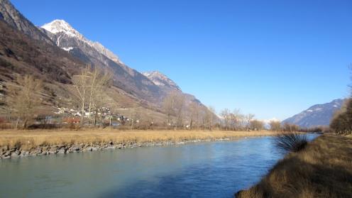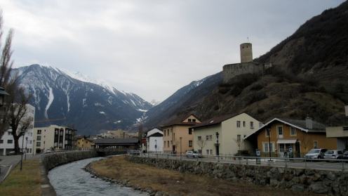 With around three hours of daylight remaining, we set off for a hike through the valley. Heading north across the railway line, we bought some snacks from a roadside shop, then walked along country lanes to reach the mighty Rhône river. Snow-tipped peaks and yellow grass stood in silent observation as the sounds of traffic receded. We had no particular destination in mind but the river led us to a little town called Fully. Here we rested at Café Les Alpes before slumping into a bus back to Martigny.