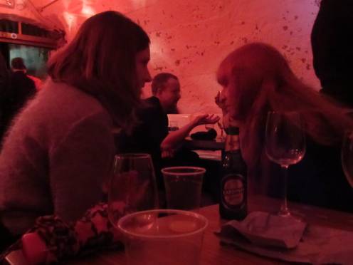 Performers were given white dressing gowns and slippers, then led out through a side door, across a square to an adjacent school where we washed in separate communal showers for men and women. Body wash, body conditioner and towels were supplied. Once dressed we joined the party: first in the gallery where wine, soup, crisps, bread, cheese, and meats were plentiful; then down in the cave-like club beneath the Manoir, where Lydia Lunch graced the walls, and Brits were first on the dance floor.
