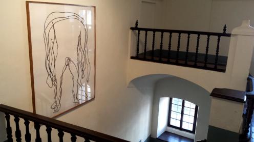 In town we partook of coffees on a sofa outside Le Minotaure café. We’d fulfilled our purpose for being there and could now savour the simple pleasures, yet I wasn’t quite ready to leave behind the world of JocJonJosch. Our participation in the opening night of ‘ o o o ‘ meant we hadn’t had time to see the exhibition properly. Our last swigs of cappuccino took us past 2pm – opening time of the Manoir – so we returned to get a clearer look at works we’d glimpsed only fleetingly the day before.