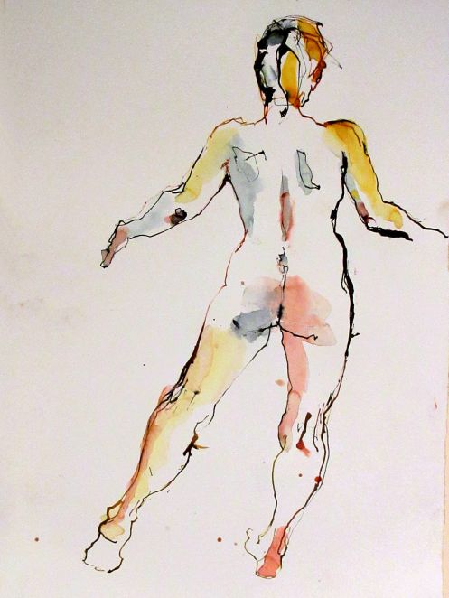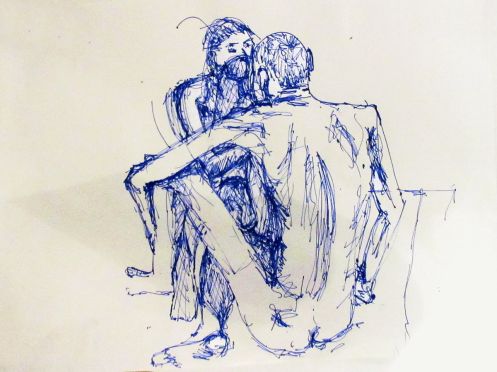 I’d never before seen so many artists crammed into The Sun. Word had gone out that The Moon and Nude was presenting a couple life drawing session, and the good folk of Clapham had turned up in big numbers. At least 30 people were surrounding Esther and me, mostly shoulder to shoulder along the walls, with a few seeking other vantage points wherever they could.