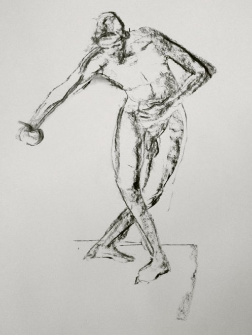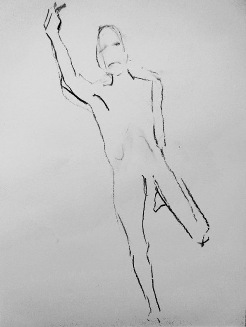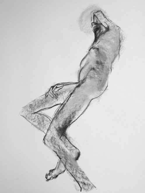 It doesn’t take much shifting for a simple, sustainable pose to become challenging or unnecessarily achy. On Monday evening, at The Conservatoire, I was asked for six poses: three of 1-minute, one each of 5-minutes and 10-minutes, and a long pose for the rest of the evening. I managed to make half of them harder than they should have been and I think that’s partly because I have really come to love working here for this group and its tutor, Victoria Rance. They inspire me to try more.