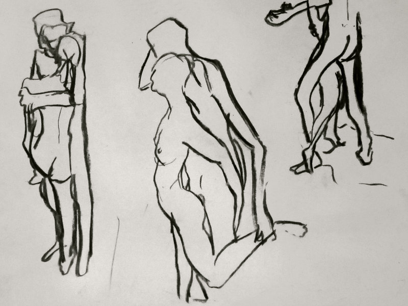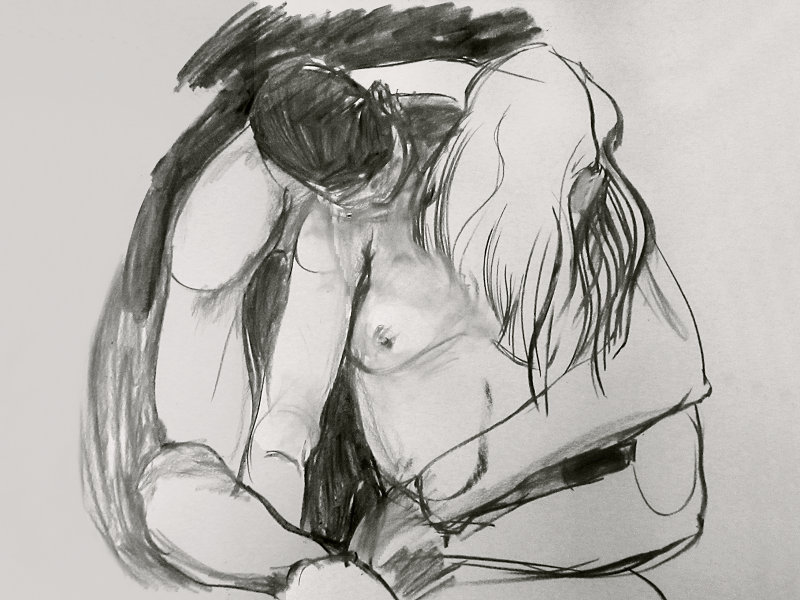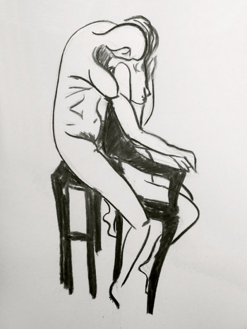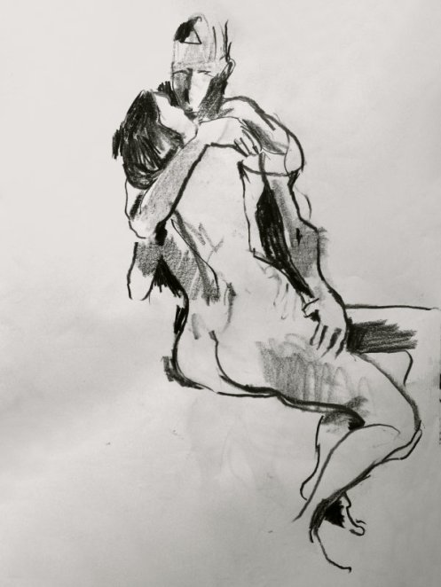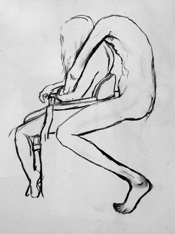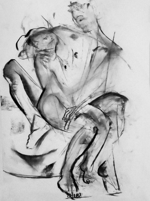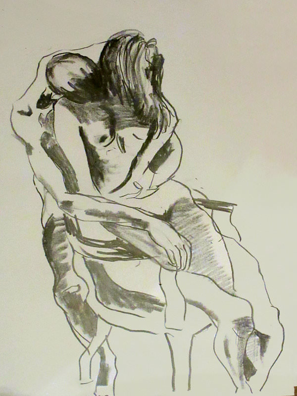 It had been a wonderful session; comfortable and filled with tenderness. Luisa steered the group with professionalism, knowledge and sensitivity, while the artists responded with boldness, delicacy and style. It was nice too that Lily Holder had come along to draw, as we’d all modelled together the previous night. There had only been time for eight of Luisa’s ten artworks – maybe we can do Schiele and Klimt some other day.