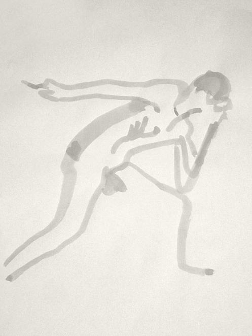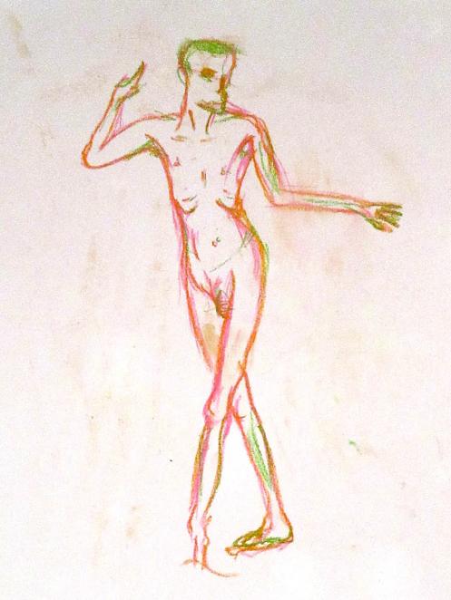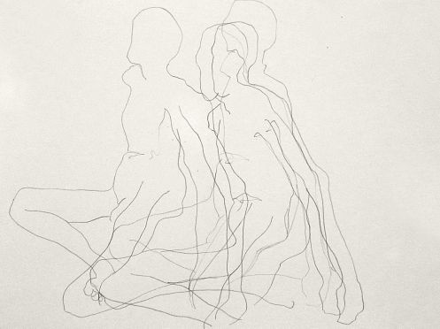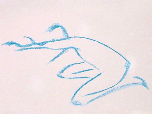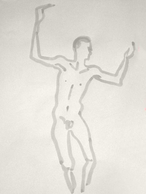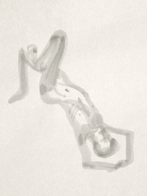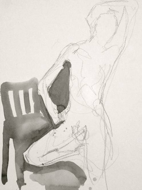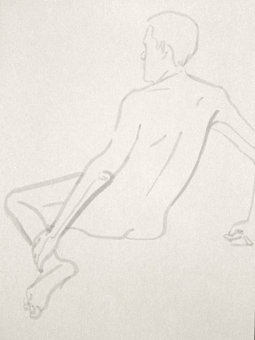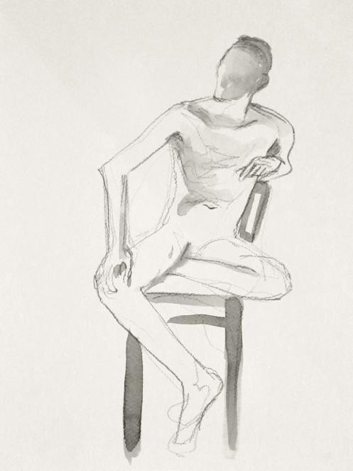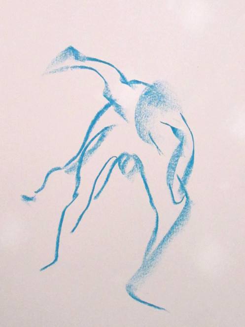 Democracy reigns after the break at Drawing the Star. Its organiser, Catherine Hall offers her artists a vote on whether to go for one 30-minute pose, two of 15-minutes, a 10 and 20, or three 10-minute poses. The first to speak preferred a full half-hour, whilst others had no strong opinion, so a long pose it would be. I eyed the pile of pillows and sheets on the floor… “Don’t lay down completely,” grinned Catherine, so I settled down into an angular yet comfortable seated posture.