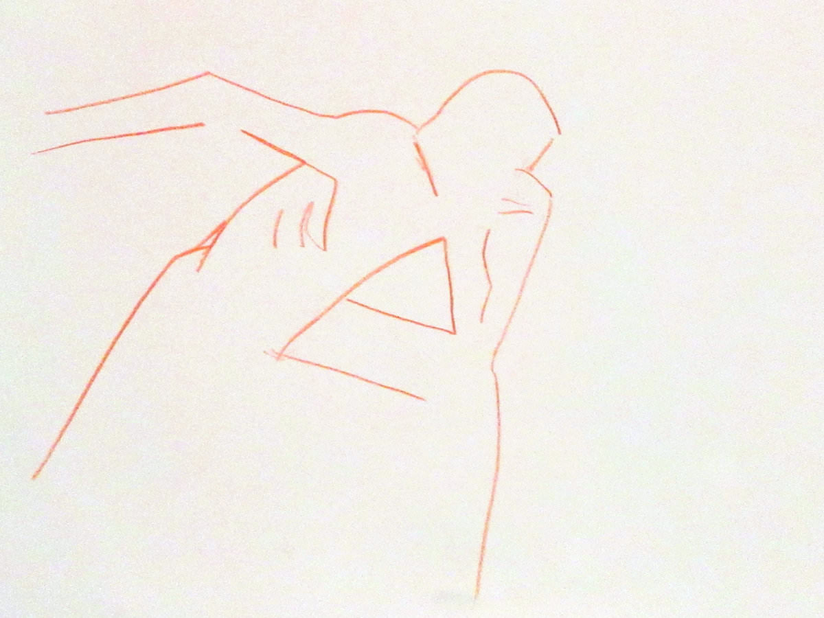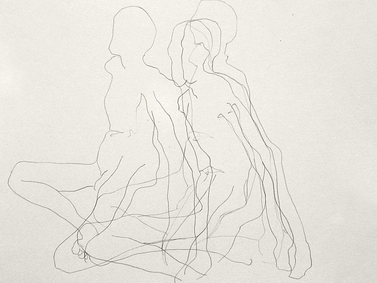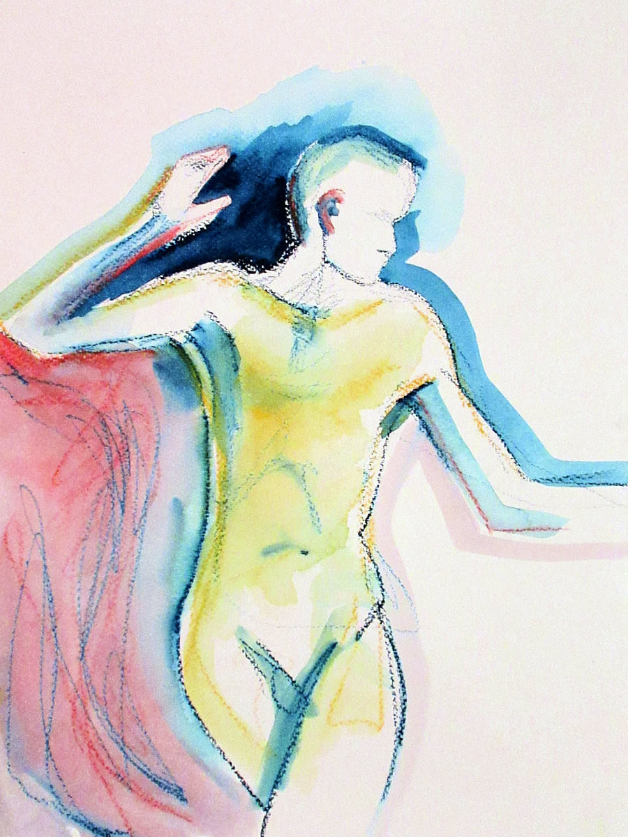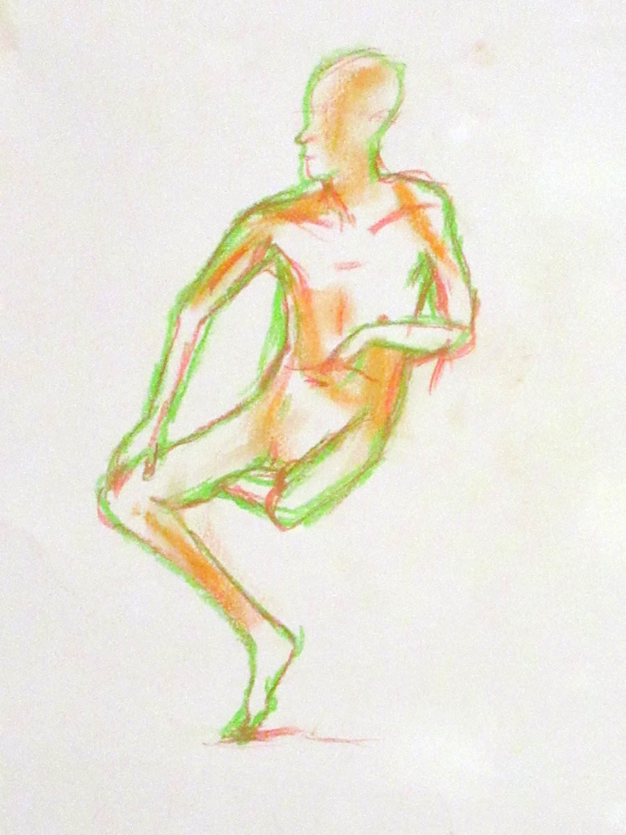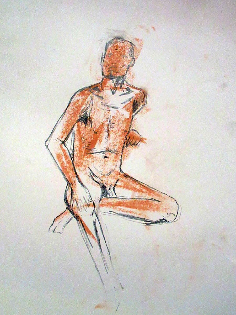 Democracy reigns after the break at Drawing the Star. Its organiser, Catherine Hall offers her artists a vote on whether to go for one 30-minute pose, two of 15-minutes, a 10 and 20, or three 10-minute poses. The first to speak preferred a full half-hour, whilst others had no strong opinion, so a long pose it would be. I eyed the pile of pillows and sheets on the floor… “Don’t lay down completely,” grinned Catherine, so I settled down into an angular yet comfortable seated posture.