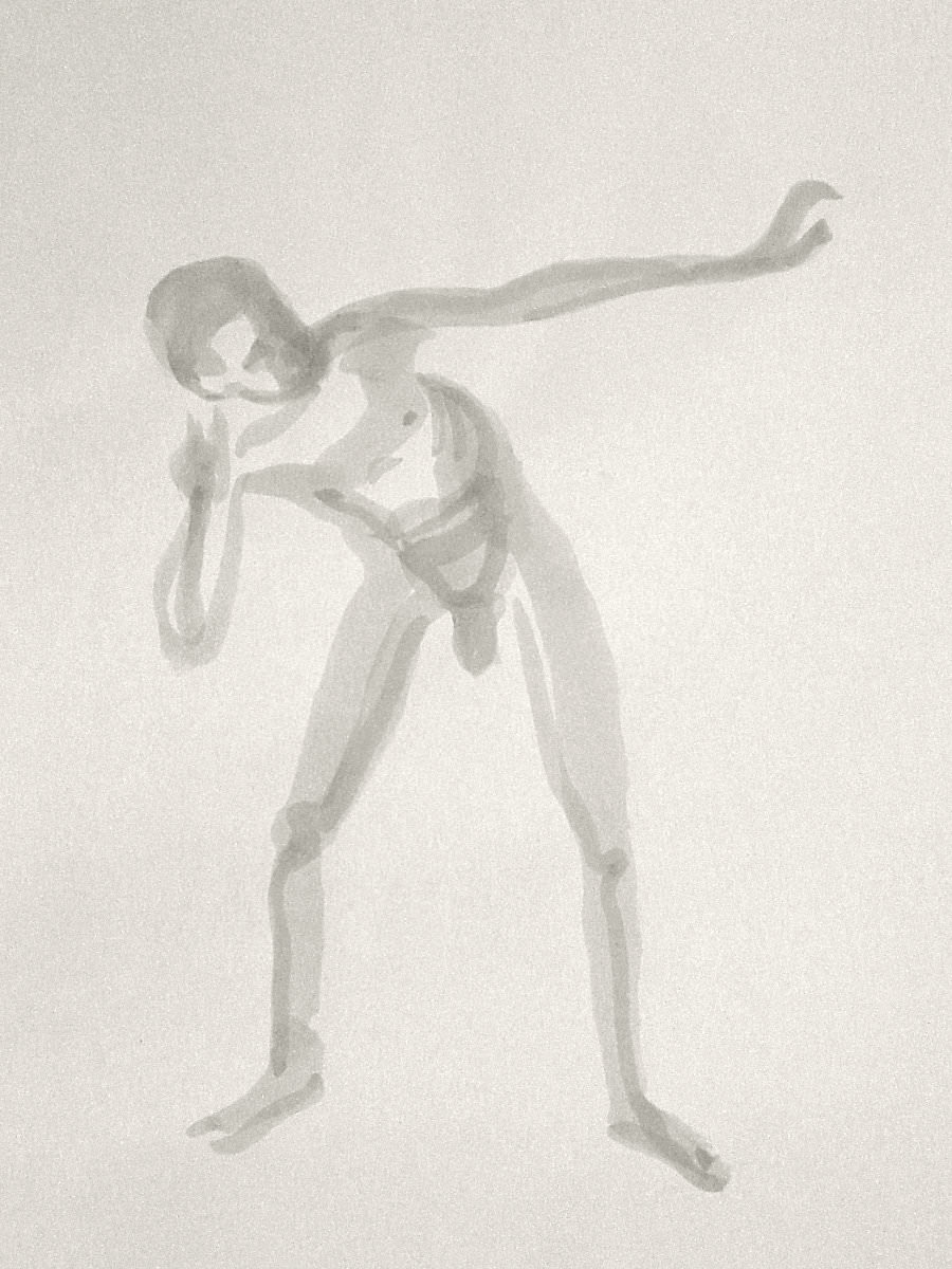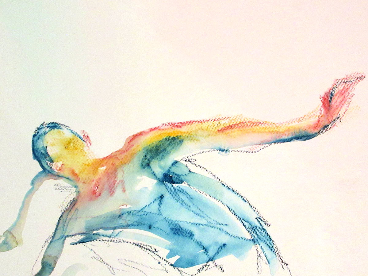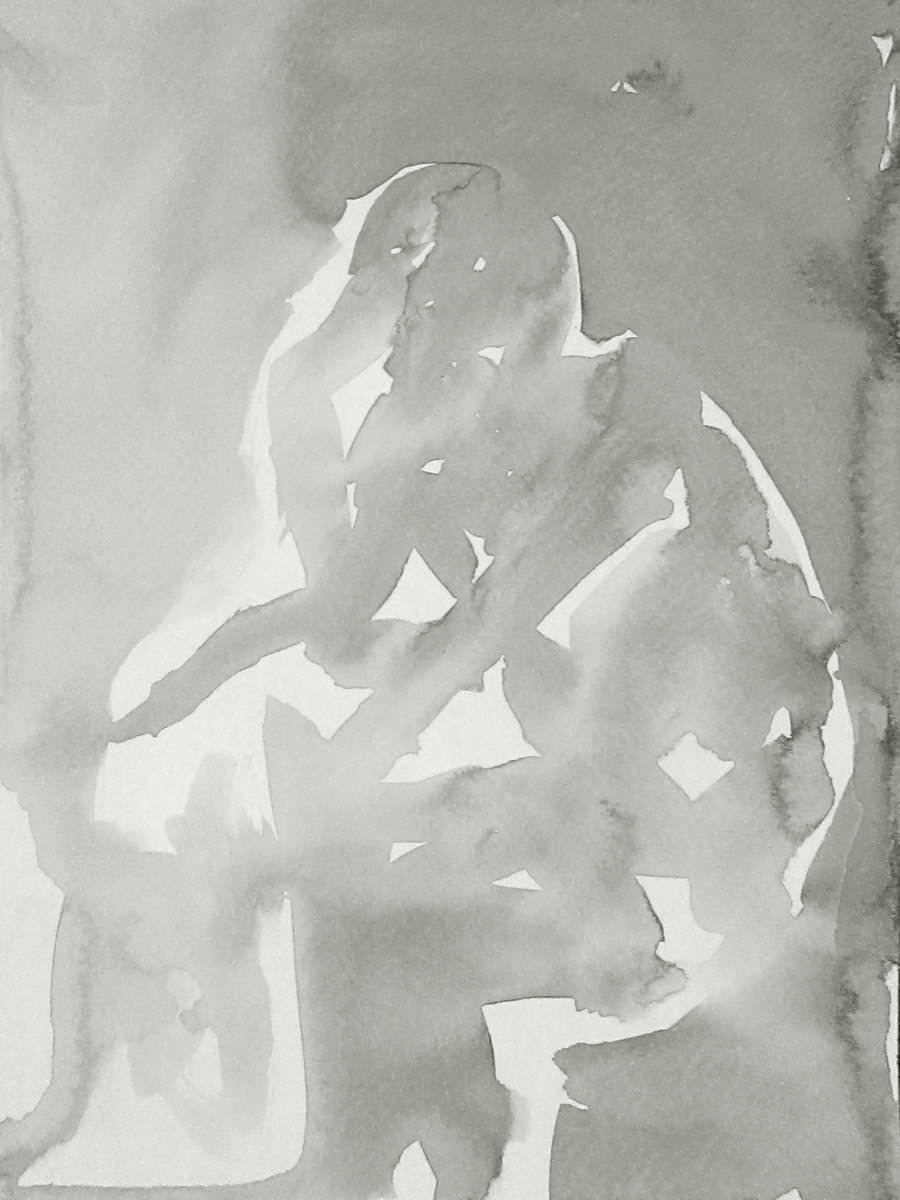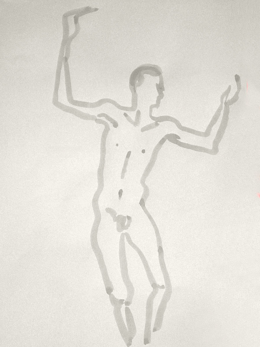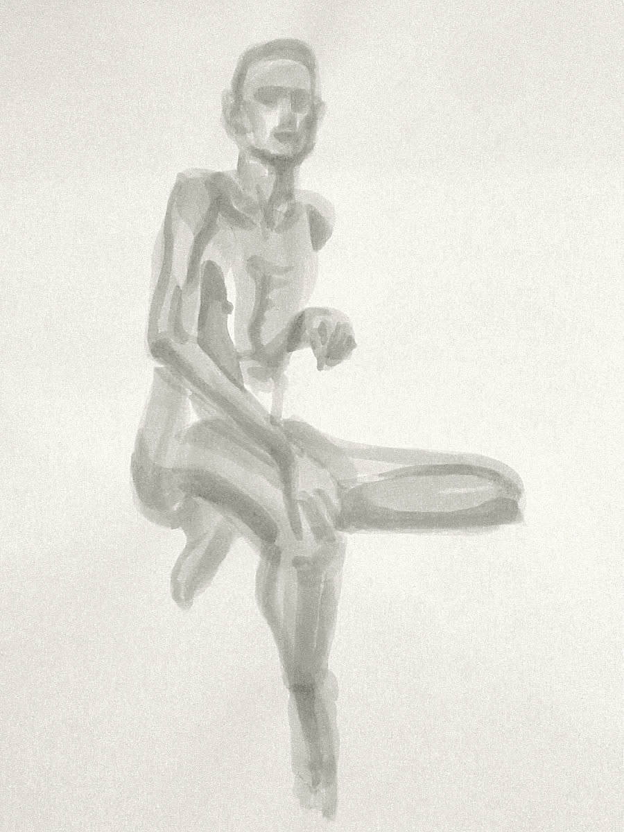 Democracy reigns after the break at Drawing the Star. Its organiser, Catherine Hall offers her artists a vote on whether to go for one 30-minute pose, two of 15-minutes, a 10 and 20, or three 10-minute poses. The first to speak preferred a full half-hour, whilst others had no strong opinion, so a long pose it would be. I eyed the pile of pillows and sheets on the floor… “Don’t lay down completely,” grinned Catherine, so I settled down into an angular yet comfortable seated posture.