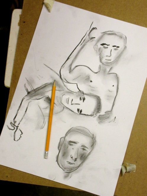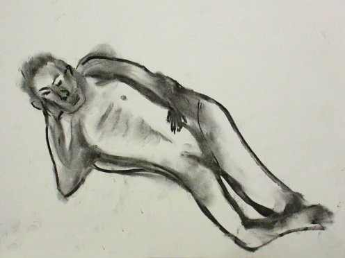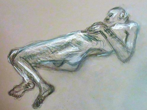 The artists were all local women; charming, encouraging and enthusiastic. Karen was a down-to-earth, warm, engaging host, whose passion for life drawing could barely be contained. After an interval for tea and biscuits, we ended with two 25-minute poses. I think we overran a little, but time matters less when the feeling is good. Our evening’s soundtrack came courtesy of Barry White and Tears for Fears CDs; musical nostalgia was never more fitting than in this environment. A lovely session.