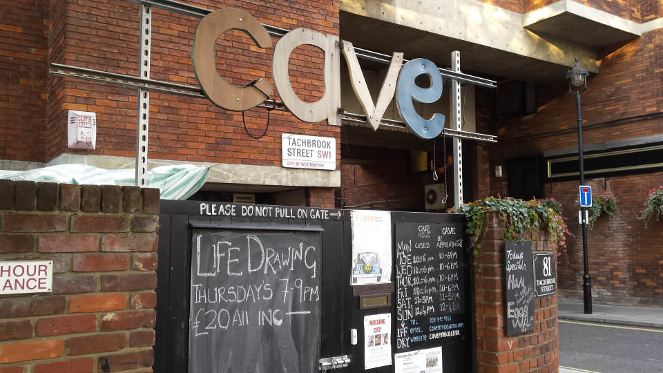 I’ve been writing this blog for nigh on five years, during which time I’ve published more than 300 tales of life modelling, performance and other arty activities. It serves mostly as a record for myself but it’s nice to get positive feedback too. Never before, however, had I been aware of it being directly responsible for a booking – until Karen at cave in Pimlico emailed me to say, “I have just read your blog post on modelling for London Drawing Group“… and offered me the chance to pose for cave life drawing.