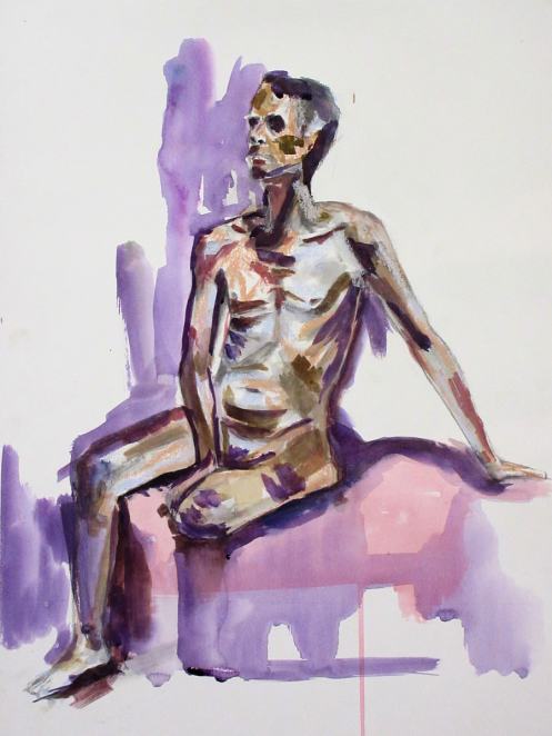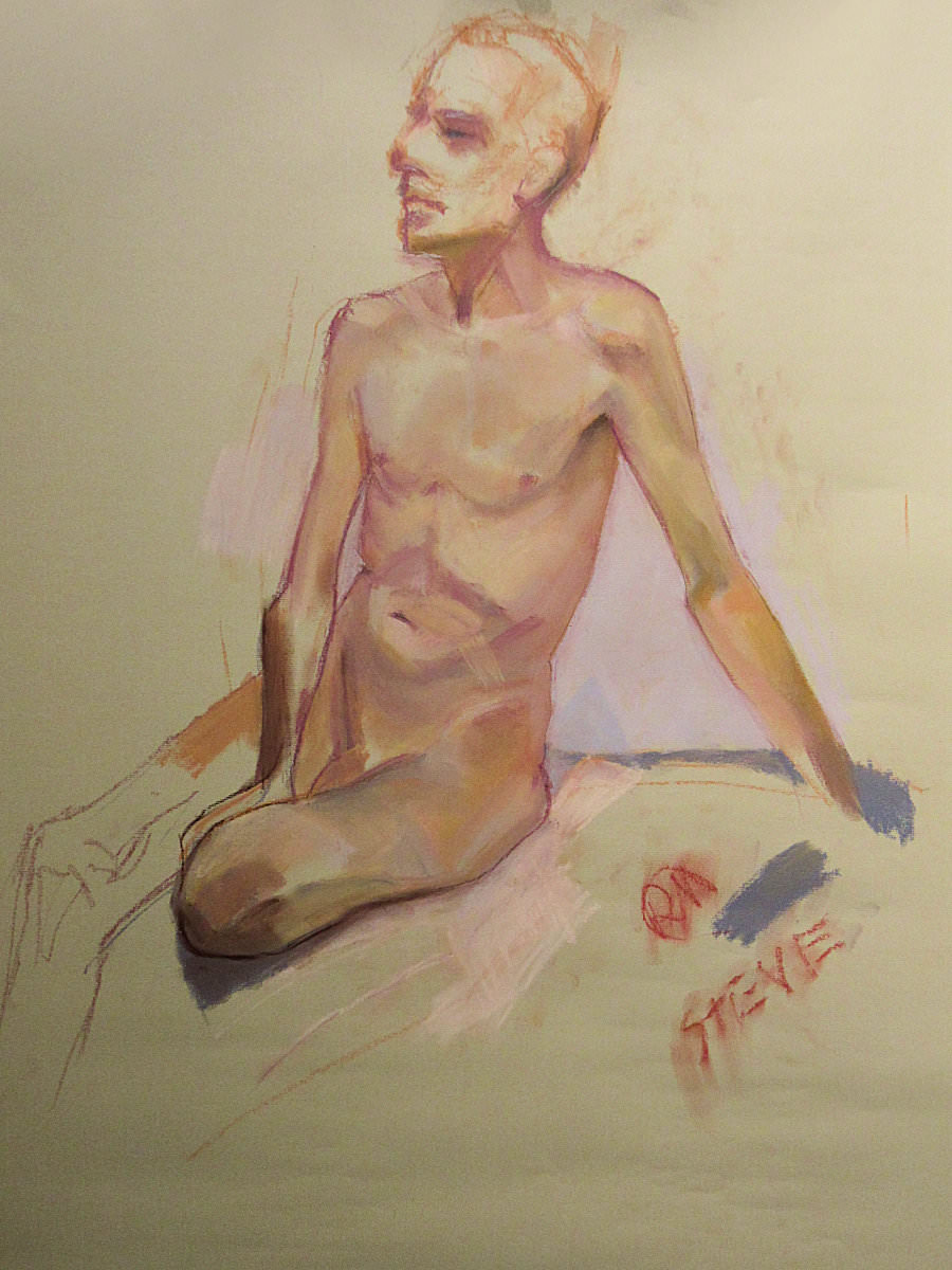 During the tea break I shook out my pains. The first hour had actually over-run a little. None of the long pose artists had been keeping watch on the time, so I was indulged to return correspondingly late for the second half. More of the same followed, but my satisfaction is derived from seeing resultant artworks at the end. Even after five years of working as a life model, I still take pleasure from knowing I’ve inspired – or at least contributed to the creation of – good art. My next booking here is for a pre-Christmas brace of 30-minute duo poses with Esther, on 8 December. Should be festive!