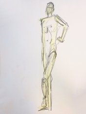 There are no tea breaks here, just short time-outs for artists to look at one another’s work after each exercise. For the final pose, I was asked to have my legs flat on the floor and my body upright. I found a suitable sustainable position and stayed in it for 40-minutes, eavesdropping Rosie’s suggestions for looking and mark-making, along with the occasional chatter of this friendly group. Come 9pm, my limbs were slow to reanimate in the first chill of autumn… but I was warmed by some nice artworks.