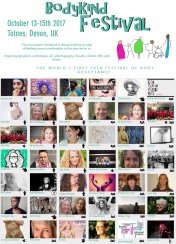 On Friday 13 October, Esther and I travelled down to Totnes, Devon to participate in “the world’s first ever festival of body acceptance“. The inaugural BodyKind Festival would include speakers, workshops, art, photography, theatre, dance, film and music, all “looking at ways of feeling more comfortable in the skin we’re in“. Esther had been invited to lead a Spirited Bodies life modelling workshop on the Saturday evening.
