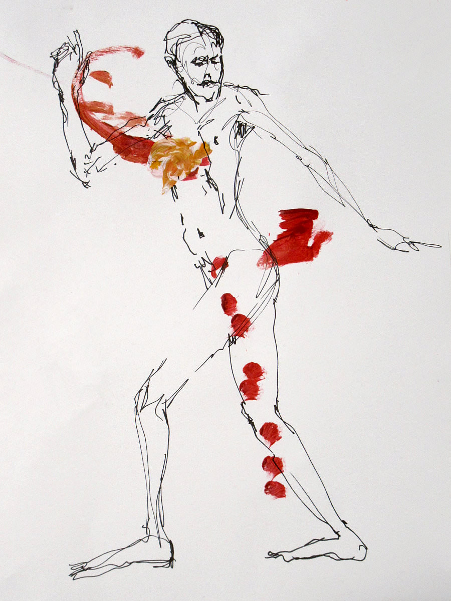 On the morning of this booking I had a winter flu vaccination. No pain nor side effects, I’m happy to report. Unfortunately, illness had already taken its toll on me, as a nasty cold last week meant I couldn’t attend The Night Horse and the Holy Baboon – an exhibition of artwork by this evening’s tutor, Victoria Rance. When Victoria arrived at The Conservatoire she was already exhausted from spending the afternoon packing everything away, but it had been a success so spirits were high. We began with short poses: three of 1-minute, one of 5-minutes and one of 10-minutes.