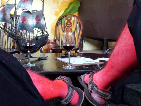 Bar staff were commendably unperturbed by the silver and green woman with her gold and red man ordering glasses of wine. We washed our hands and took care not to get paint on the sofa into which we slumped. This pub has sentimental significance for us, so it was a doubly refreshing way to end the day. Prolonged showering still lay ahead, but not before we’d relaxed. Mmmm. Now, let’s relive the whole ride in Cy’s video…