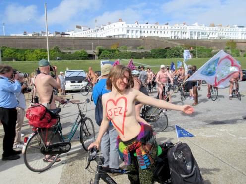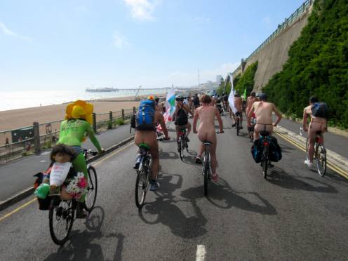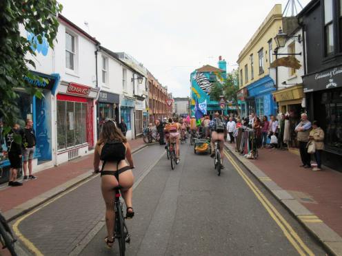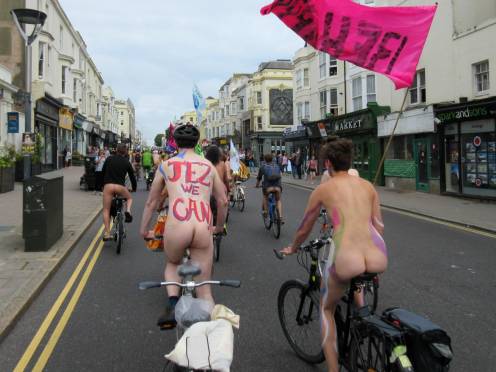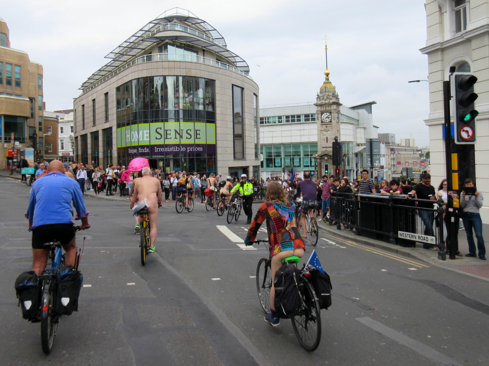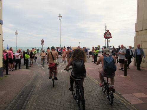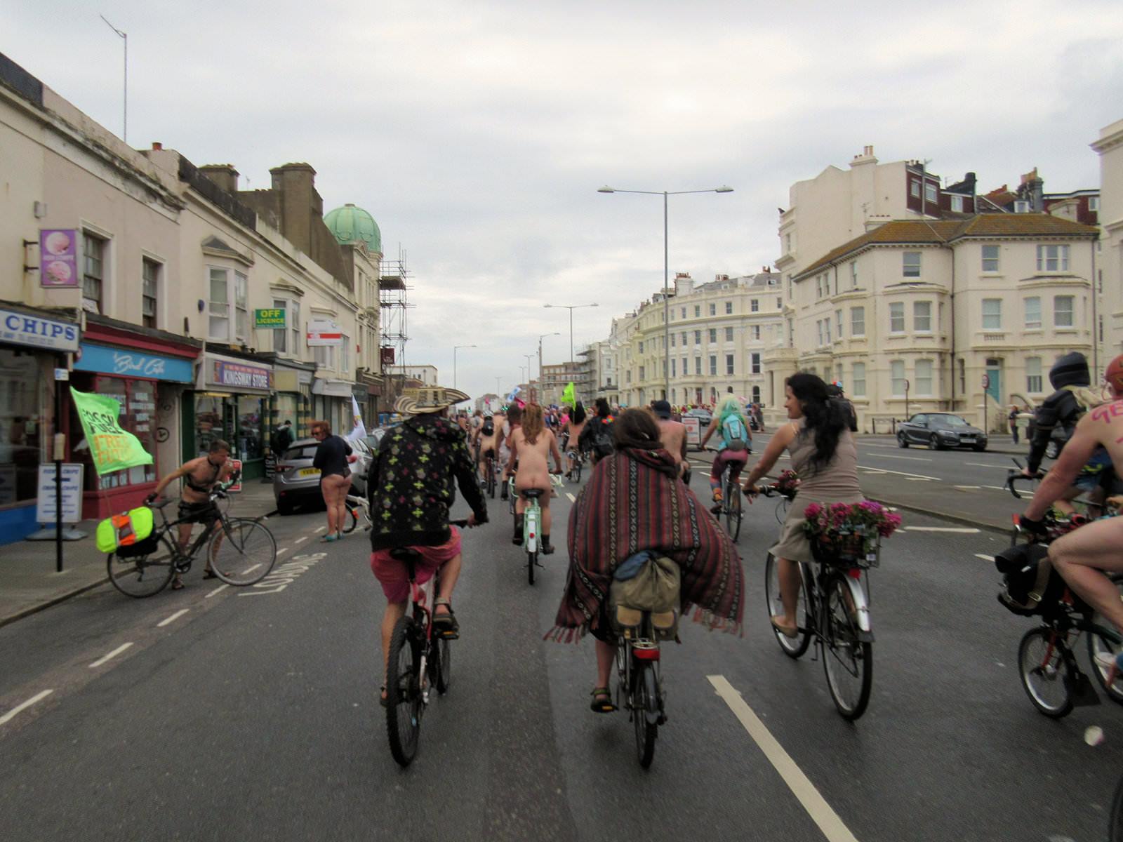 It says something for the people of Brighton that whereas Londoners – or, more likely, London tourists – cheered us all around the capital, the south coast’s stout residents remained coolly impassive. Several hundred naked people cycling in the town centre? Meh… whatever. There were pockets of approval but I suspect our protest against car culture and oil dependency was largely preaching to the converted here.